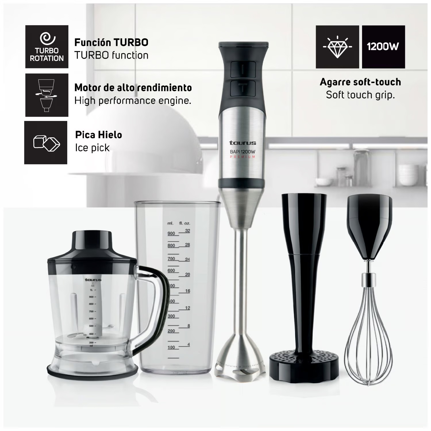 Alta tecnología en tu cocina. Resultados profesionales. Tritura cualquier alimento por muy duro que sea con los 1200W de potencia de la batidora de varilla Bapi 1200 Inox. Pica y bate rápidamente incluso hielo. Consigue resultados profesionales y homogéneos gracias al diseño de su cuchilla y al sistema exclusivo de rotación de los alimentos. Con empuñadura ergonómica de tacto suave y diseño antisalpicaduras, la batidora de varilla Bapi 1200W Inox será tu mejor aliada en la cocina.