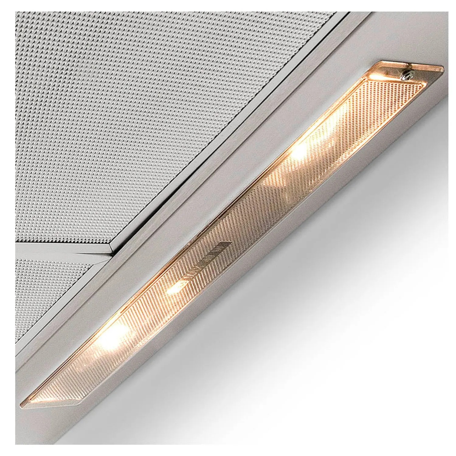 Cuenta con un diseño moderno con detalle en vidrio. Realza tu cocina con un toque de elegancia, 3 Velocidades de Extracción. Puedes seleccionar entre tres velocidades: Minimo, medio y alto dependiendo del tipo de preparación de tus alimentos, Mejor iluminación que los focos convencionales ahorrando menor consumo de energia. Sistema recirculante. Especial para cocinas con espacios limitados