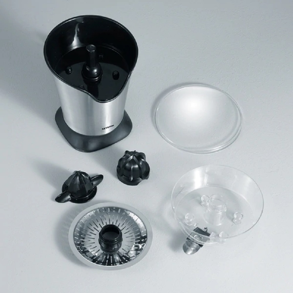 El Exprimidor de Cítricos Eléctrico de Acero Inoxidable CP 3534 es ideal para la dosis de vitamina mañanera o en aliños para un jugo de cítricos fresco y saludable. Podrás disfrutar de deliciosos y numerosos cítricos ya que tiene 2 conos de prensado de diferentes tamaños, muy fácil de usar con la conexión sencilla presionando el cono exprimidor y su práctica boquilla de acero inoxidable con tope antigoteo para el fácil vertido en el vaso. Su carcasa y tamiz de acero inoxidable de alta calidad lo hacen apto para el lavavajillas. Super práctico ya que cuenta con un compartimento en la parte inferior del equipo para guardar los conos exprimidores.