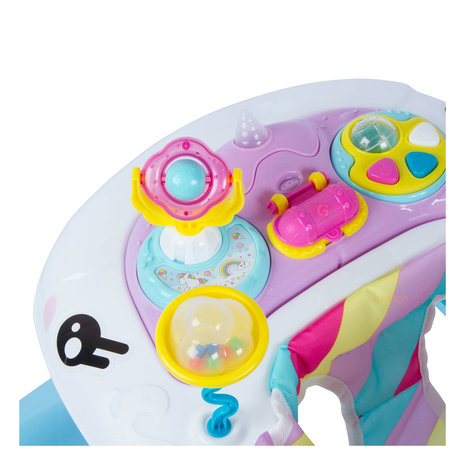 Posee juegos de colores y sonidos que estimulan el desarrollo de tu bebé, también posee 3 niveles de altura que al momento de caminar sea el más agradable y cómodo para el bebé.