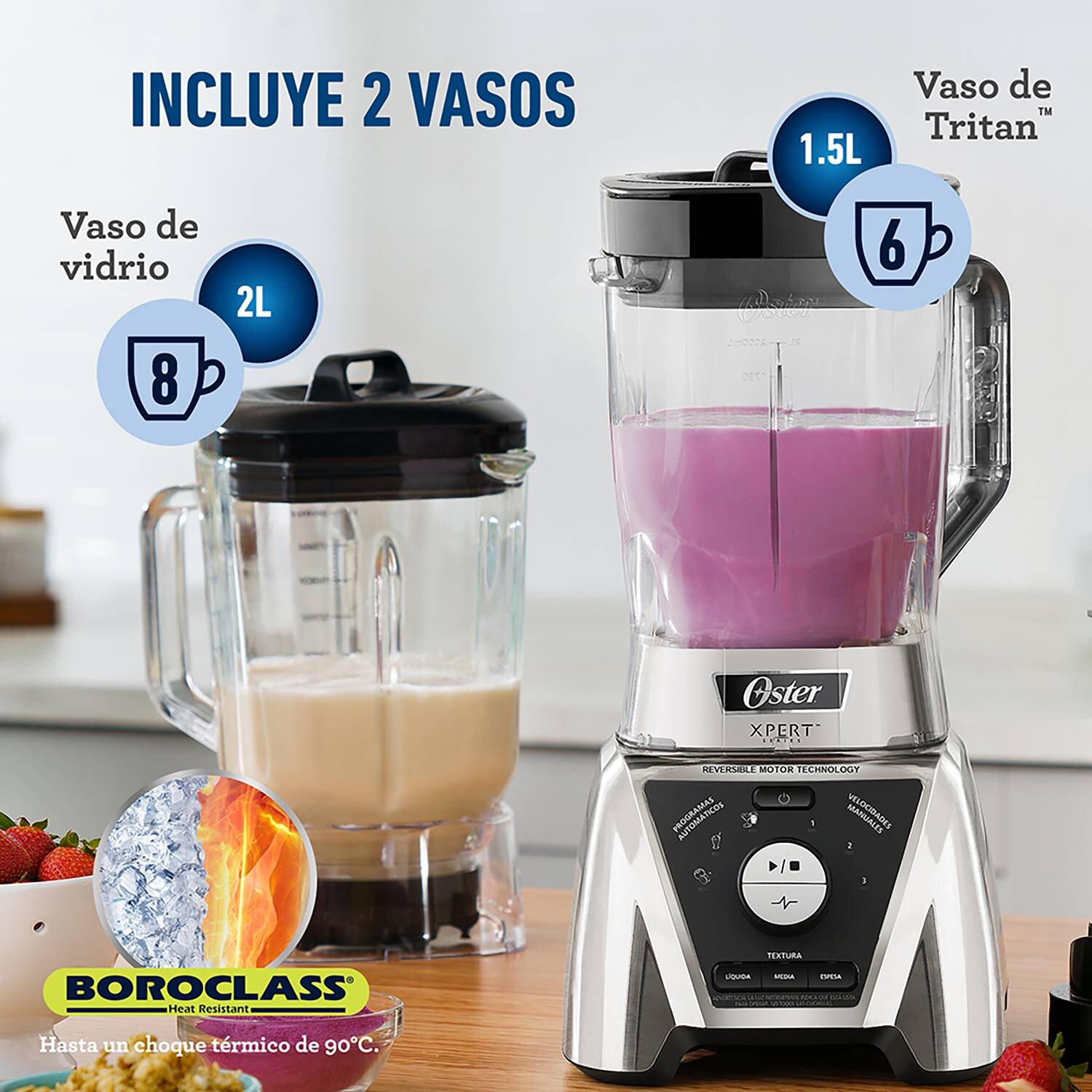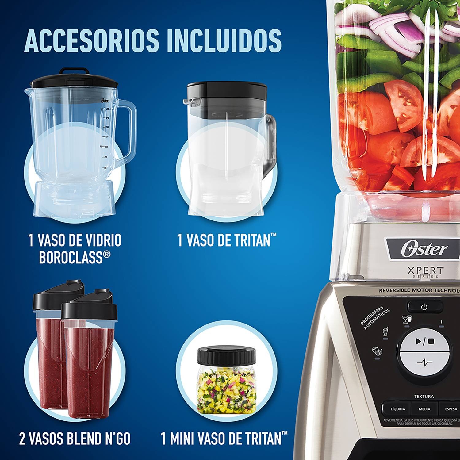 La licuadora Oster® Xpert Series™ con control de textura personaliza la consistencia de espesa a líquida. Te da el poder de preparar todo lo que imaginas. A ti que disfrutas el sabor de los ingredientes frescos y saludables, esta es la licuadora que estabas esperando.