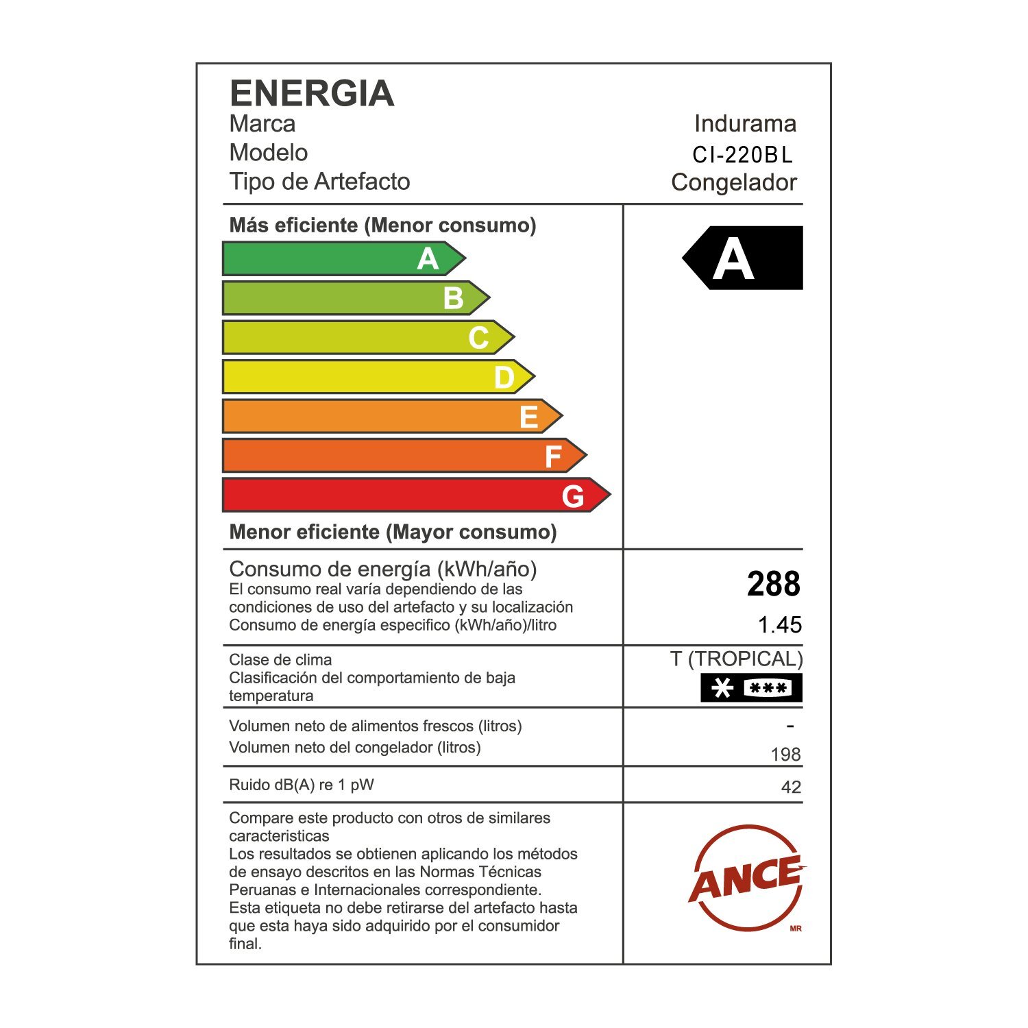 Ahora tus comidas y alimentos se conservarán y durarán mucho más tiempo gracias a la nueva congeladora modelo CI-220BL. Tiene el sistema que congela y conserva tus alimentos de manera más rápida y de manera uniforme. Asimismo, cuenta con una capacidad bruta de 198 litros, los cuales serán perfectos para tu familia o para empezar un negocio. ¡No lo pienses más y aprovecha esta oportunidad!