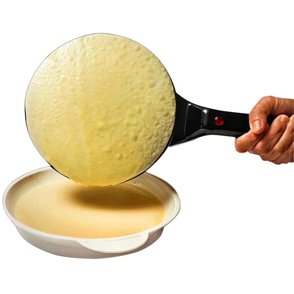 Panqueques de 20 cms de diámetro en 20 segundos, sin necesidad de usar aceite en su preparación. De fácil uso y limpieza