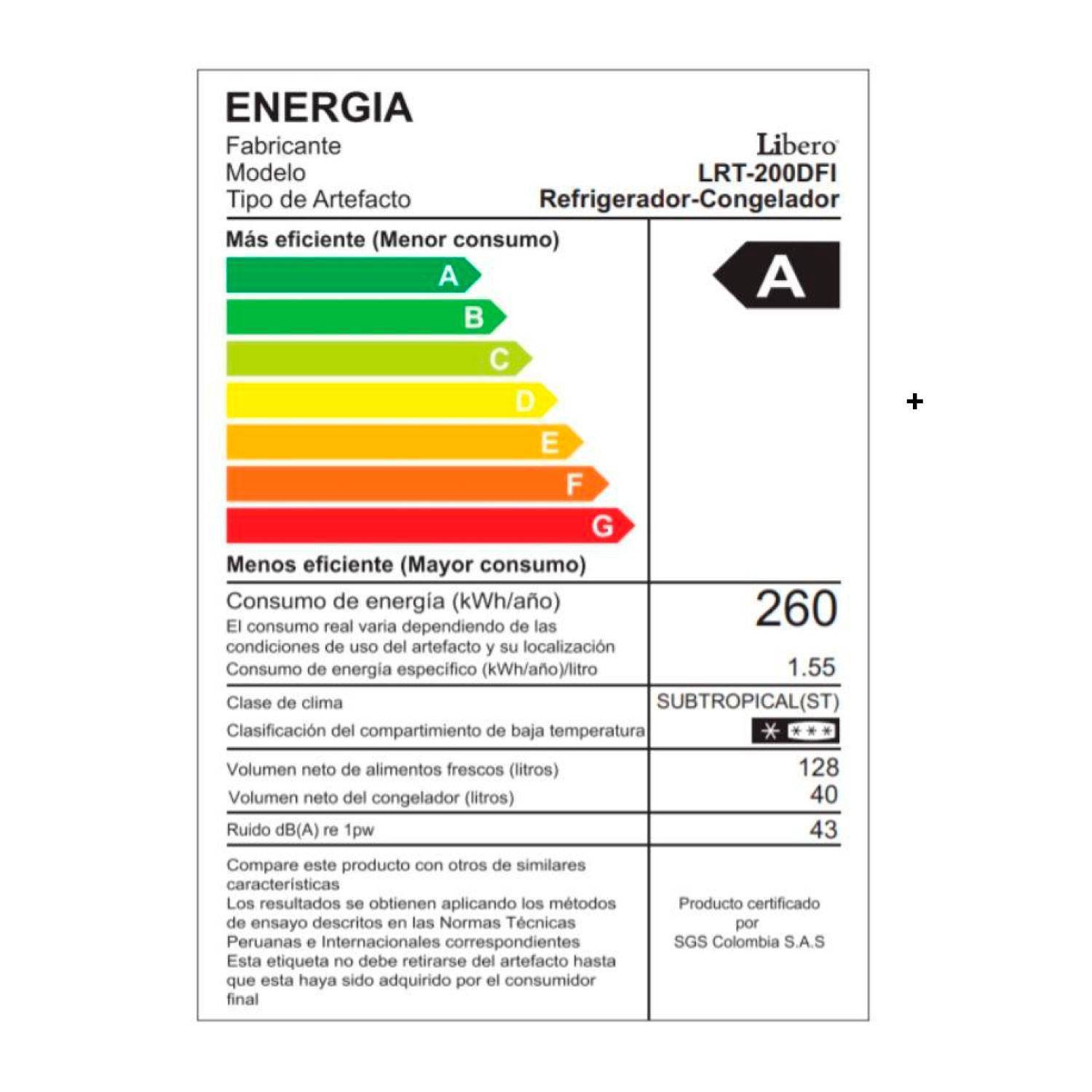 REFRIGERADORA LIBERO DEFROST INOX LRT-200DFI