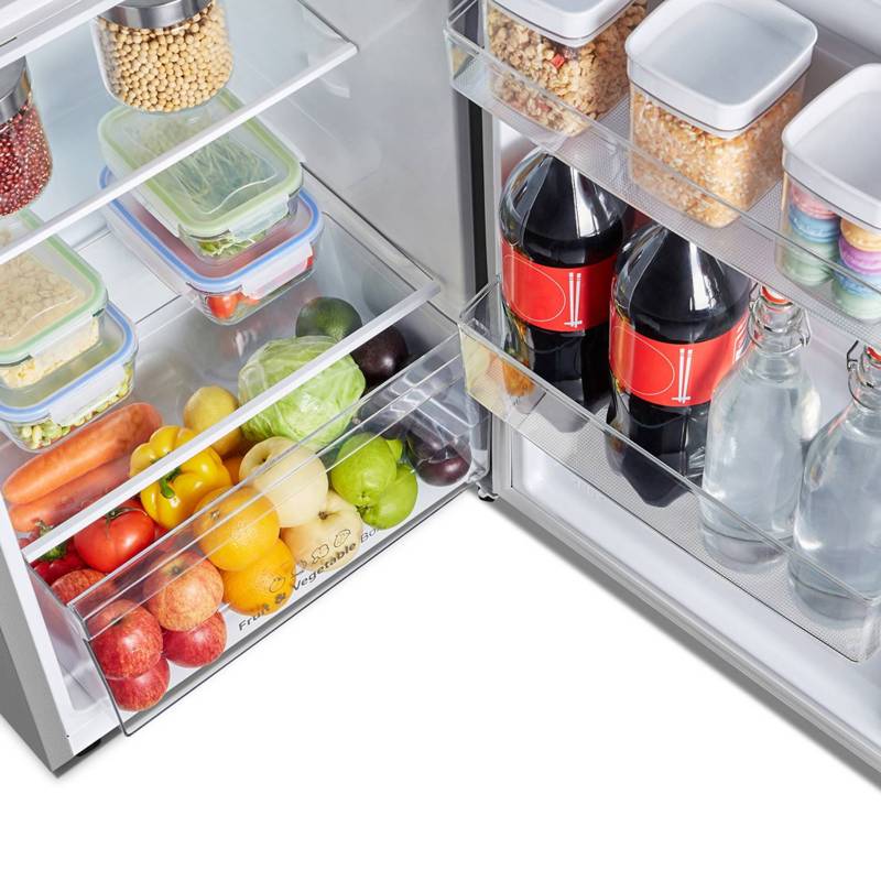 Con el ice maker interior, nunca más tendrás que preocuparte por quedarte sin hielo. Sus bandejas de vidrio templado son resistentes y fáciles de limpiar, lo que hace que el mantenimiento de la refrigeradora sea muy sencillo.