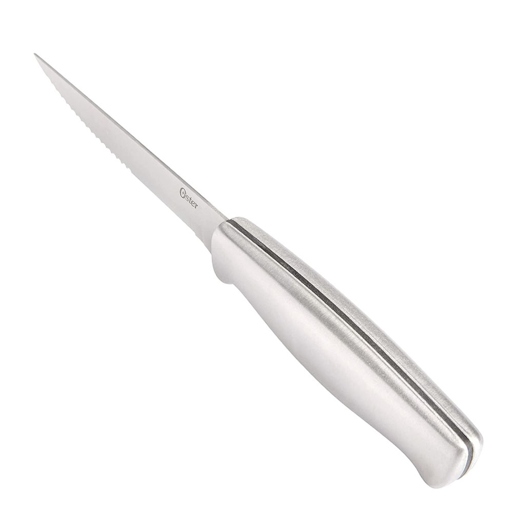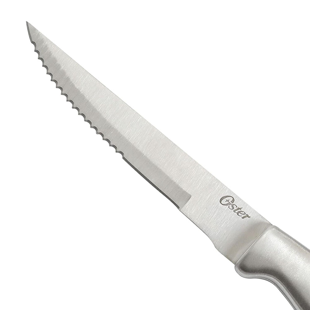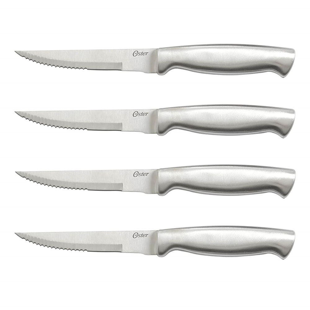 Complemento perfecto o reemplazos para esos cuchillos faltantes para tu colección Oster Baldwyn, estos 4 cuchillos de carne completarán tu surtido para esas cenas y reuniones más grandes. Acero inoxidable con asas suaves y fáciles de usar y limpiar. Los cuchillos Oster Baldwyn están estampados con precisión para mayor durabilidad en toda la longitud del cuchillo. La marca OSTER, promete rendimiento, versatilidad y durabilidad. Un producto innovador para el hogar, fabricado de acuerdo con los más altos estándares de calidad y eficiencia para hacerles la vida más fácil, saludable y placentera. Un motivo más para compartir en familia con el respaldo de la marca OSTER que cuenta con 95 años de experiencia e innovación de productos para el hogar.