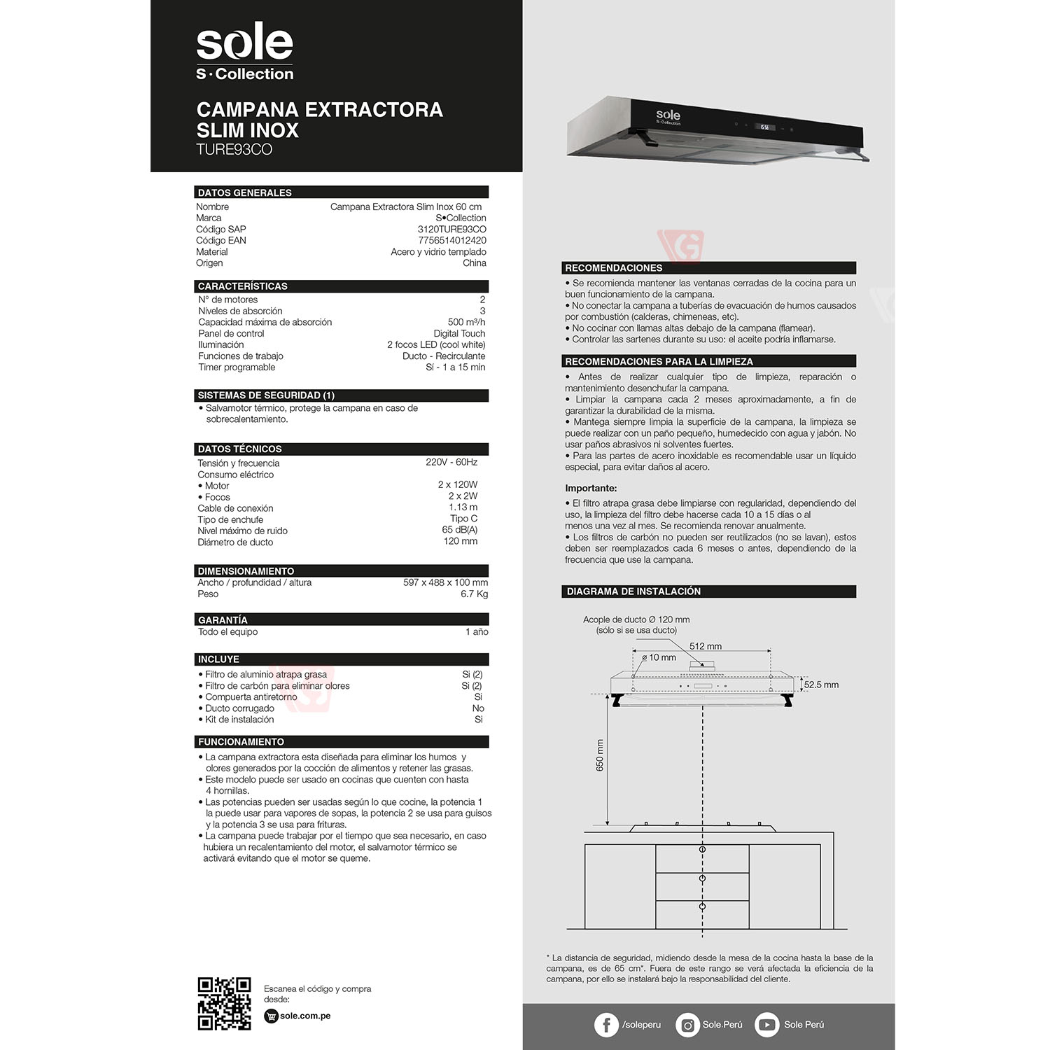 • Sistemas de seguridad: Salva motor térmico (protege a campana en caso de sobrecalentamiento)