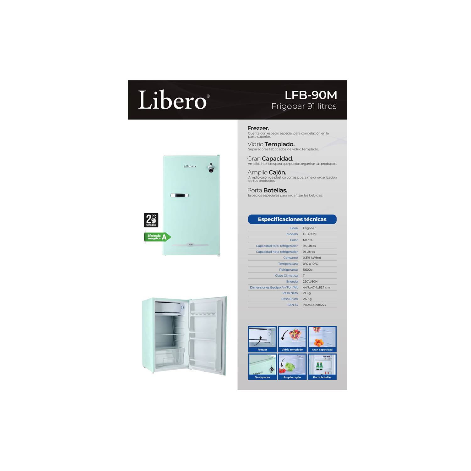 Frigobar Retro 91l Menta LFB-90M Libero