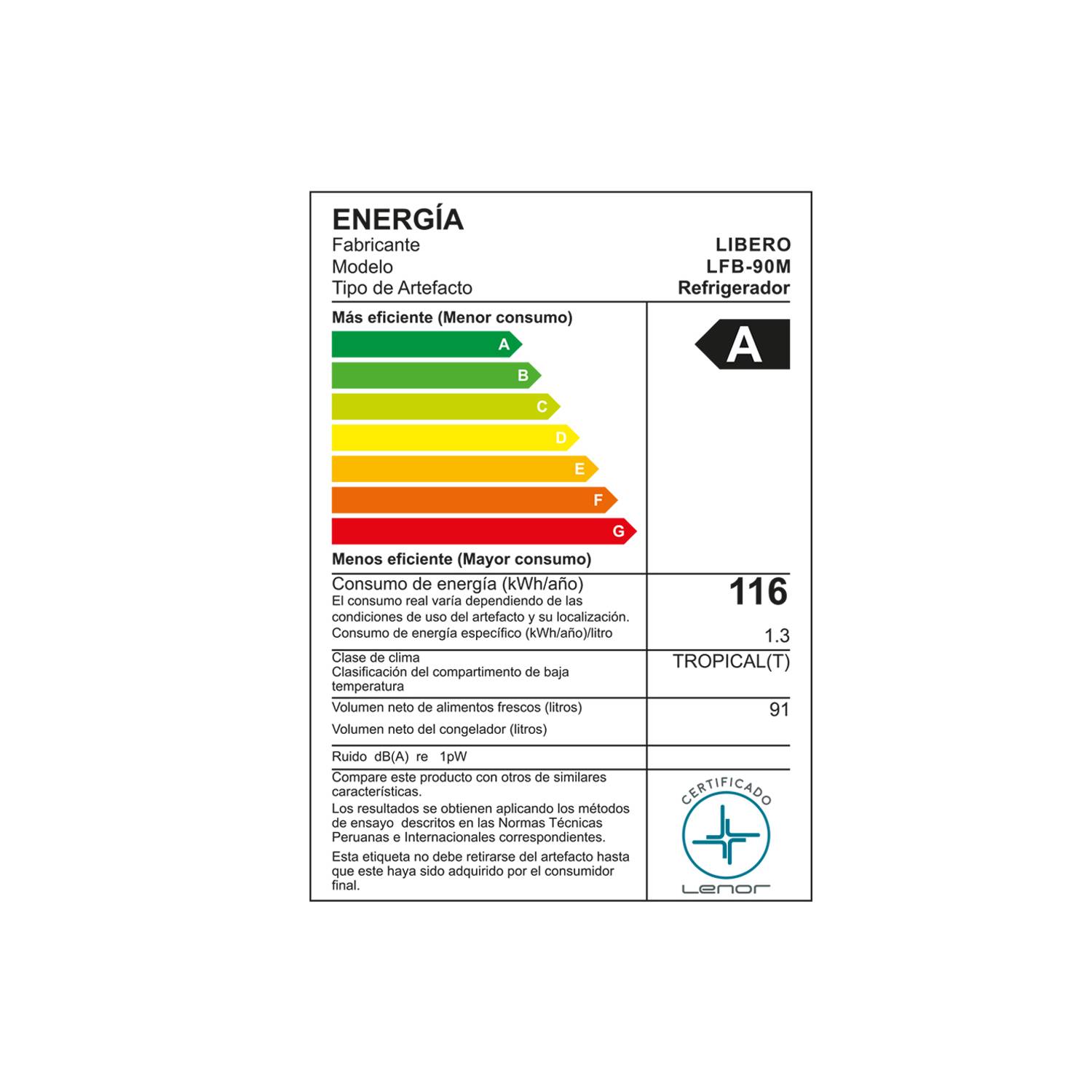 • Bajo consumo de energía, eficiencia energética A+.