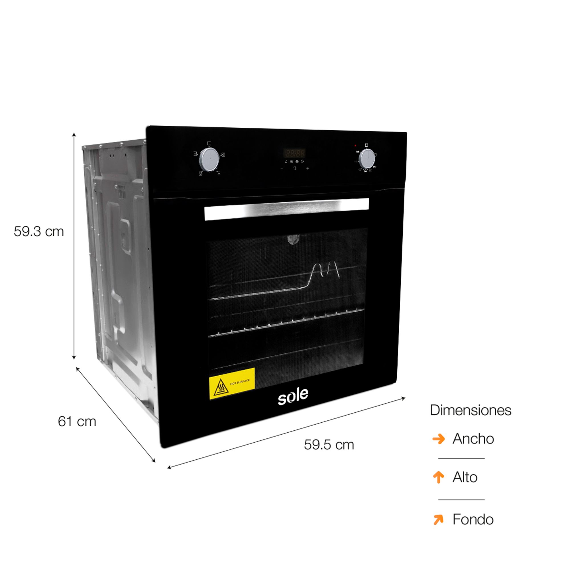 • Puerta segura al tacto, con 3 capas de vidrio templado que previenen quemaduras durante el funcionamiento.