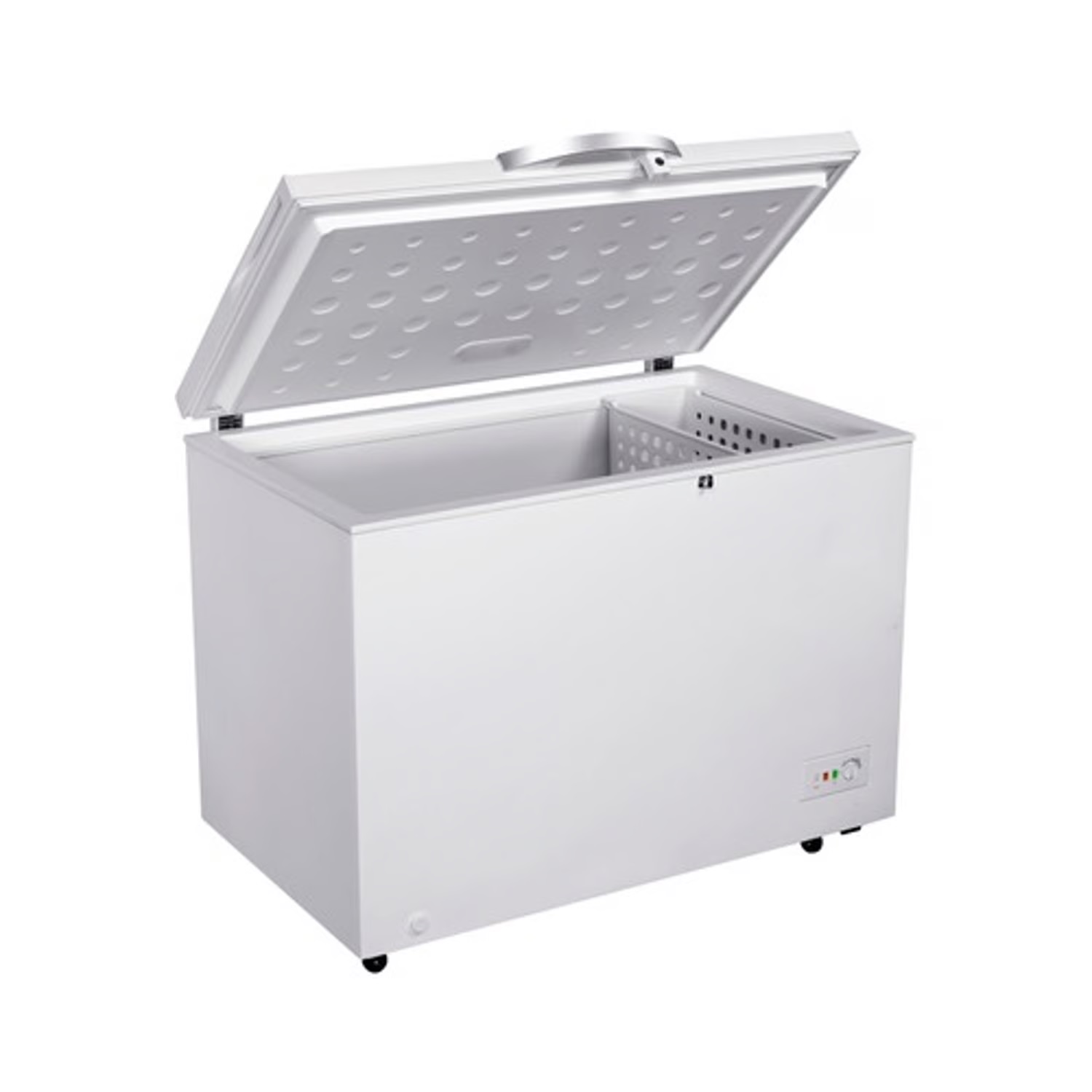 El congelador horizontal EFCC32 tiene una capacidad de 316 litros, es de una sola puerta y funciona con control de temperatura mecánico. Brinda el máximo poder de congelamiento, ya que está clasificado con 4 estrellas, alcanzando una temperatura de -18 °C, lo que garantiza que los alimentos se conserven por más tiempo. Además, si necesitas hacer un congelamiento rápido, puedes utilizar la opción turbo para llegar a -21 °C.