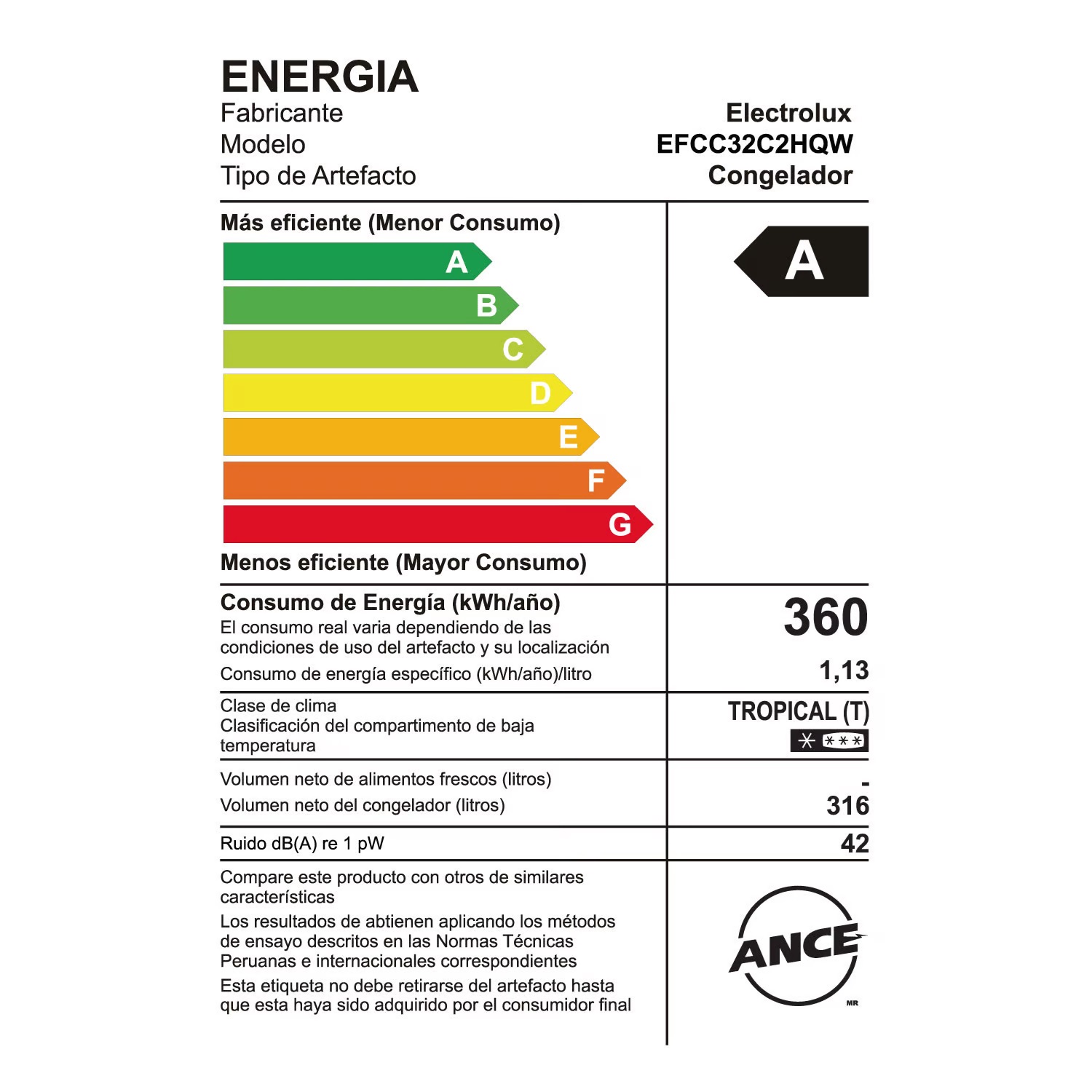 El mecanismo de descongelación es manual y tiene un drenaje para eliminar el agua. Su clasificación energética es A, puesto que consume un 50 % menos de energía. Además, utiliza gas refrigerante R600, lo que evita la emisión de gases que afectan la capa de ozono, haciéndolo más ecológico.