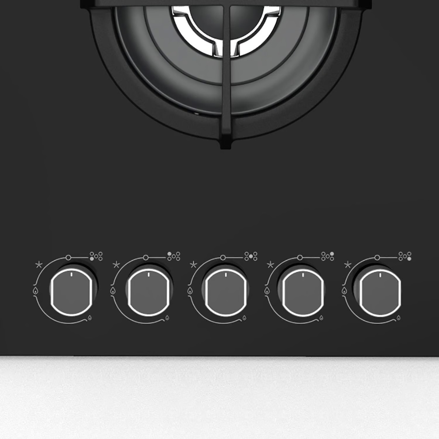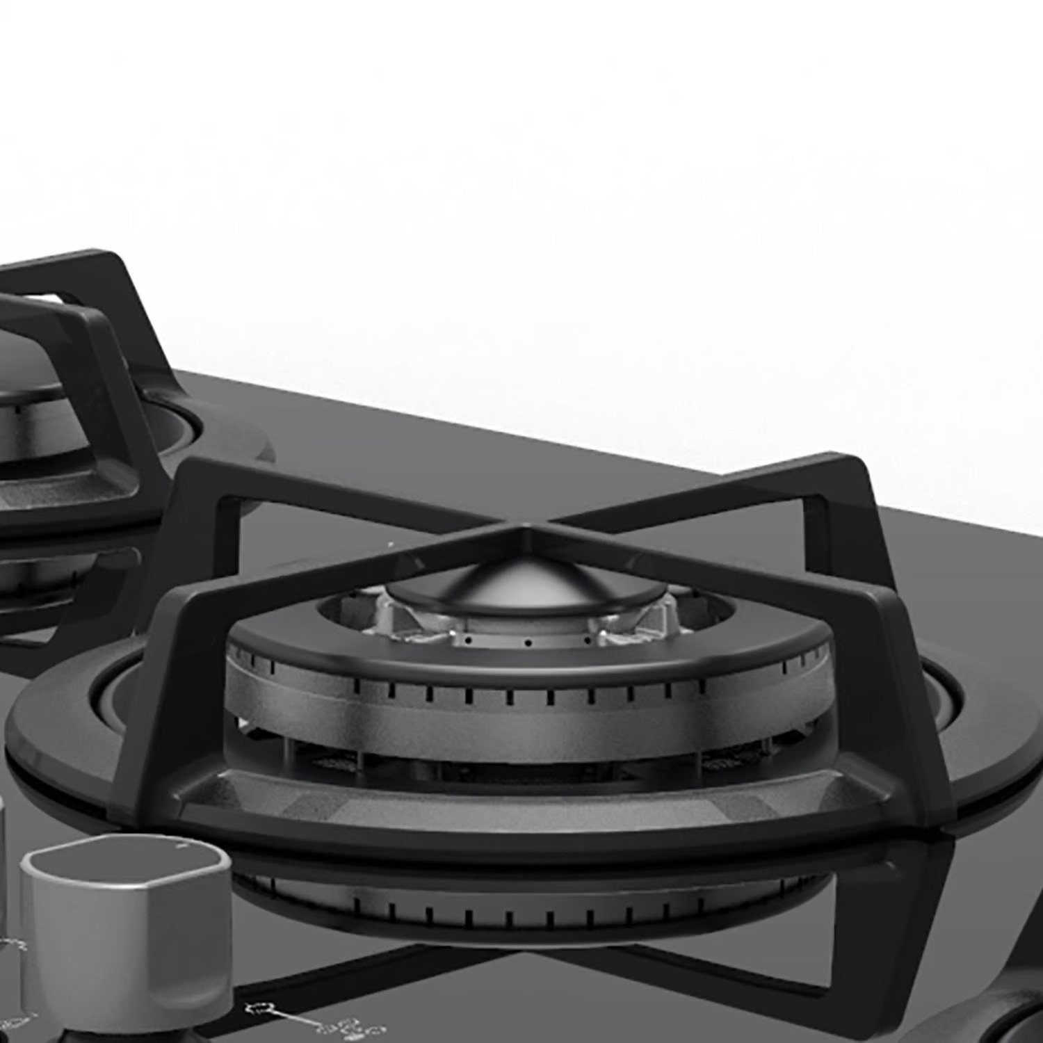 Cubierta en cristal templado y parrillas de hierro fundido con diseño innovador de máxima resistencia.