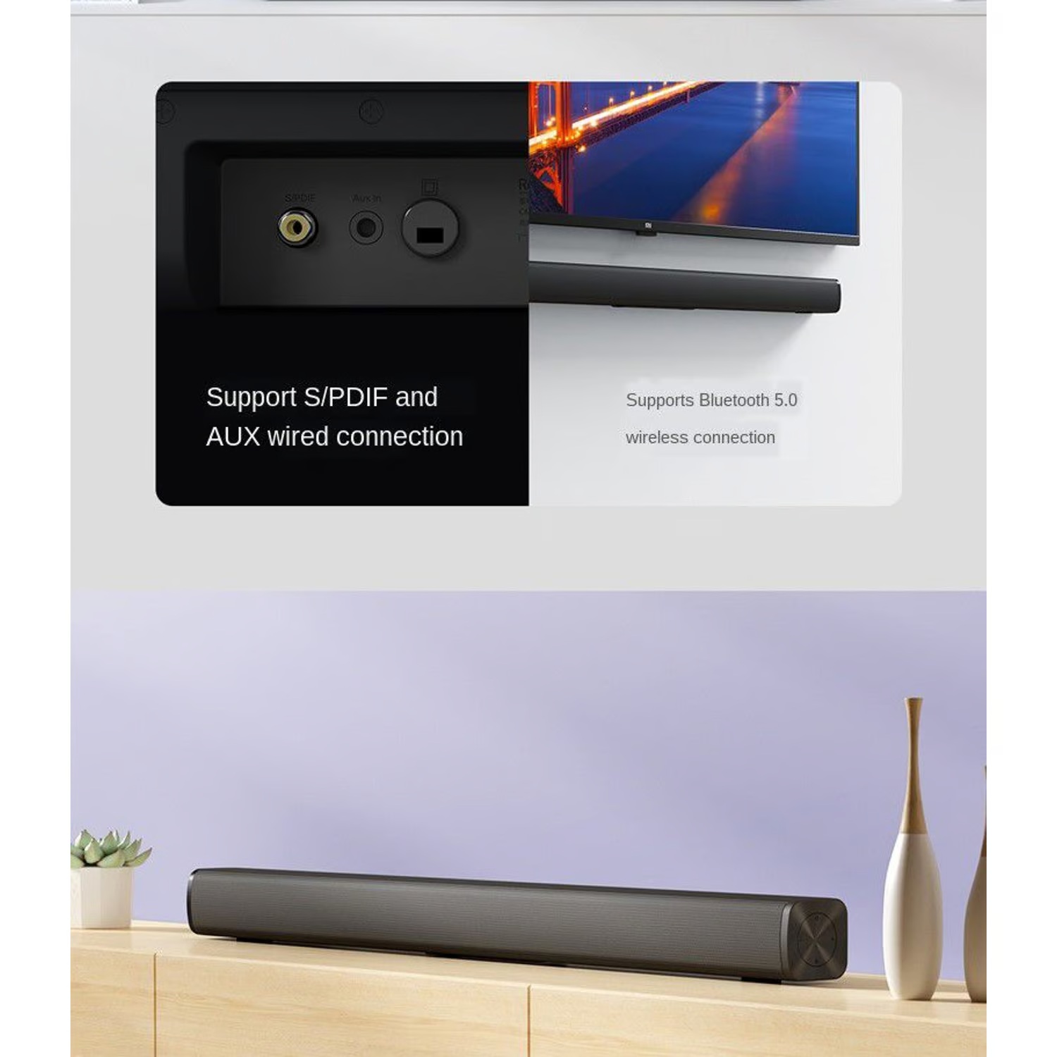 La Xiaomi Redmi TV Soundbar ofrece un sonido lujoso en un diseño minimalista y elegante, ideal para mejorar la experiencia auditiva de cualquier espacio. Compacta, funcional y con una potencia de 30W, combina conectividad inalámbrica Bluetooth 5.0 y por cable (AUX/S/PDIF) para una experiencia versátil y de alta calidad.