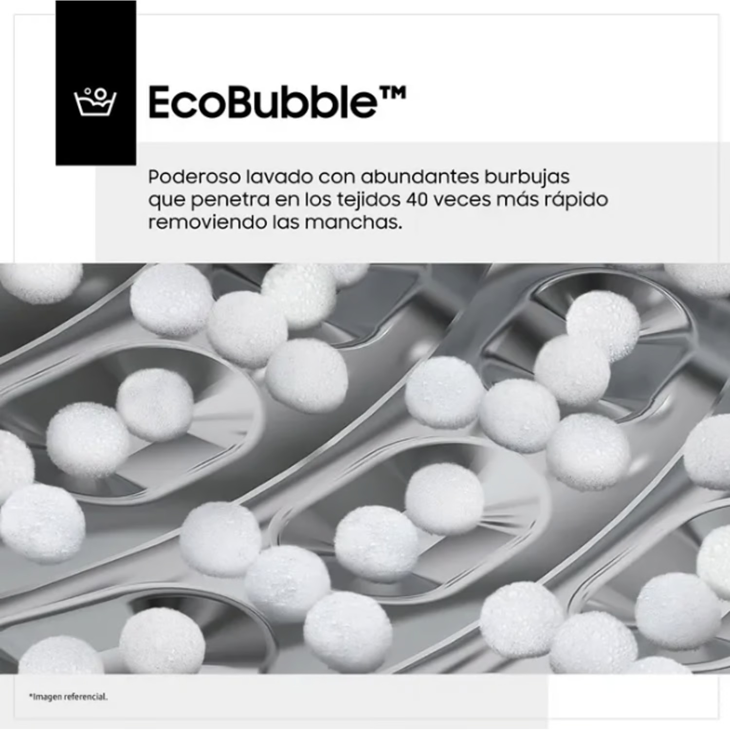 - Tecnología Ecobubble™: Convierte el detergente en burbujas para una limpieza profunda incluso a bajas temperaturas, protegiendo tus prendas y ahorrando energía.