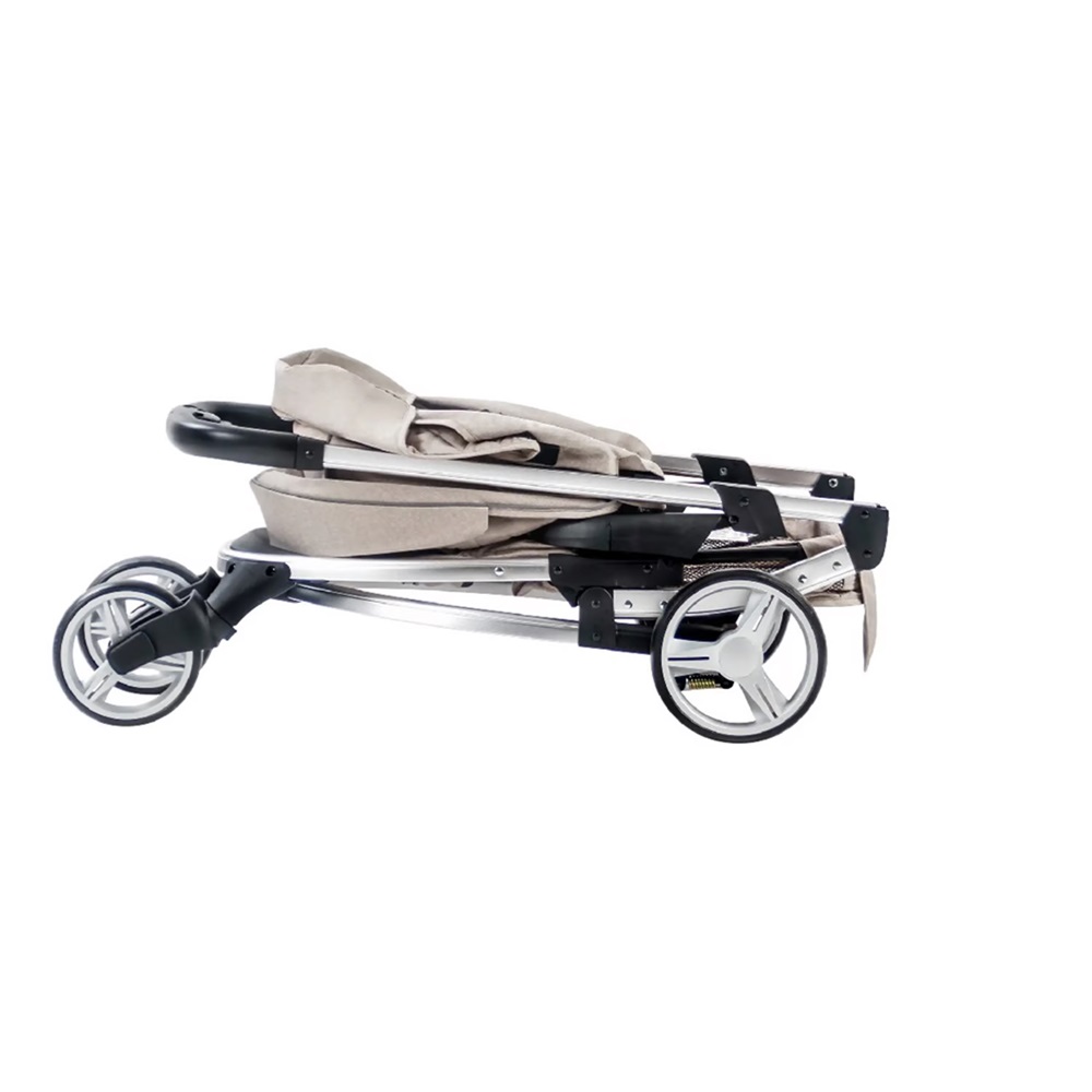 Sistema 3 en 1: Incluye un moisés, una butaca huevito homologada para el automóvil y un cochecito, todos adaptables a la misma estructura, lo que facilita el cambio entre ellos.
