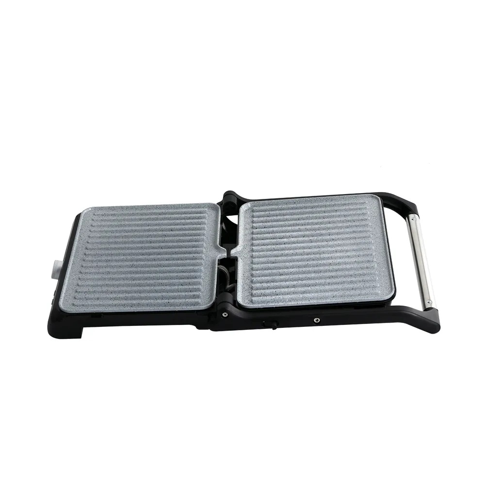 Grill Taurus Asteria II: Eleva tu experiencia culinaria con este versátil grill que ofrece seguridad con su mango frío al tacto, comodidad gracias a su bandeja de goteo para recoger el exceso de aceite, y un sistema de bisagra flotante que adapta la cocción a diferentes grosores. Disfruta de su control de temperatura ajustable, su resistente y fácil de limpiar recubrimiento cerámico y la posibilidad de usarlo como parrilla abierta a 180 °C . Además, cuenta con luces indicadoras de encendido y listo y amplias placas de 29 x 23 cm. ¡Tu mejor aliado para comidas deliciosas y saludables!