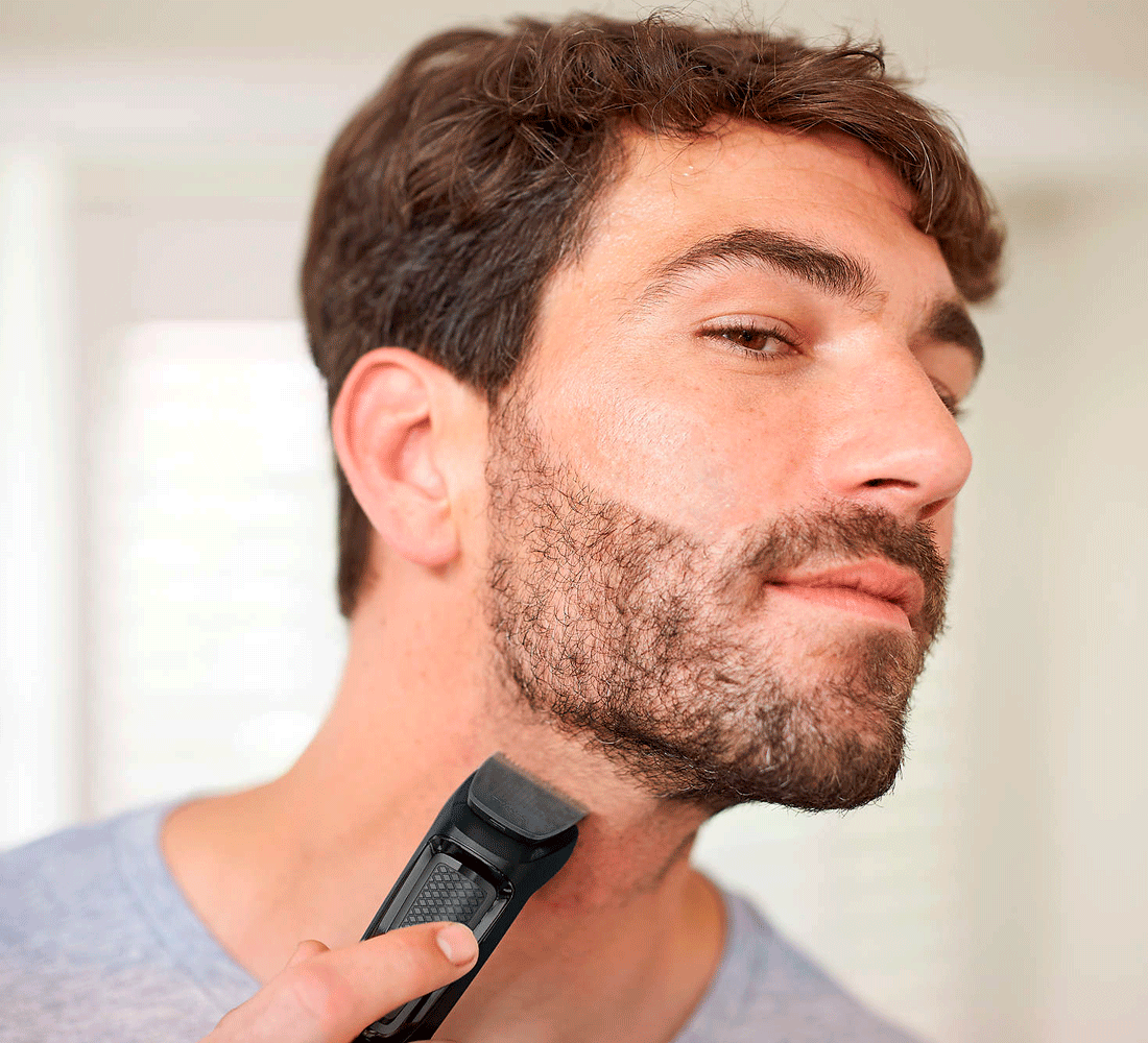 Utiliza el recortador sin peine para conseguir líneas limpias y definidas en los bordes de tu barba y cuello. Las cuchillas autoafilables del recortador se mantendrán afiladas igual que el primer día incluso después de tres años de uso.