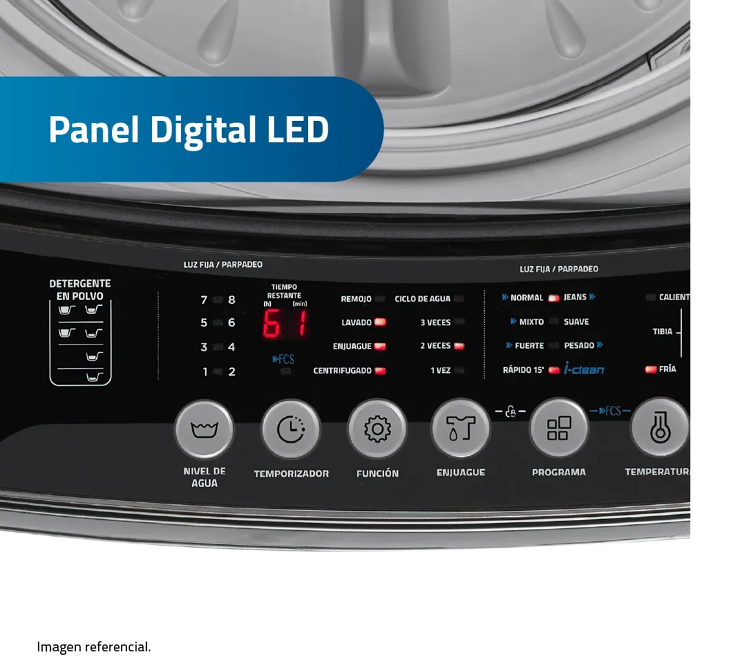Cuenta con un panel digital intuitivo que facilita la selección entre 8 programas de lavado, adaptándose a diferentes tipos de prendas y niveles de suciedad. Además, su tambor de acero inoxidable no solo es resistente, sino que también ayuda a un lavado más higiénico y duradero.