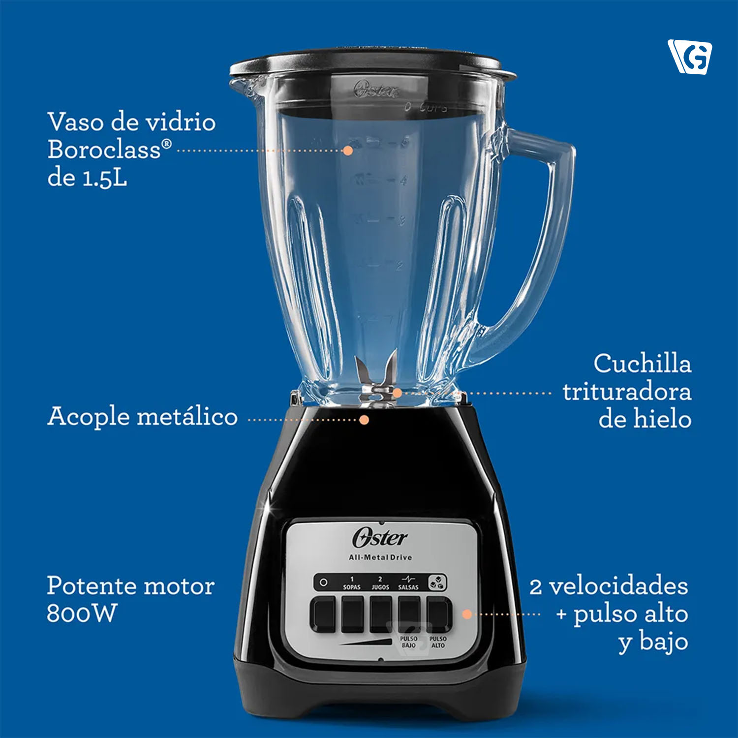 Licuadora Oster 2 Velocidades + Pulsador tiene un poderoso motor con alta fuerza de torsión y vaso de vidrio refractario Boroclass con la capacidad de 1.5 litros, la licuadora Oster son ideales para preparar una amplia variedad de recetas frías y calientes, jugos, batidos y mucho más.