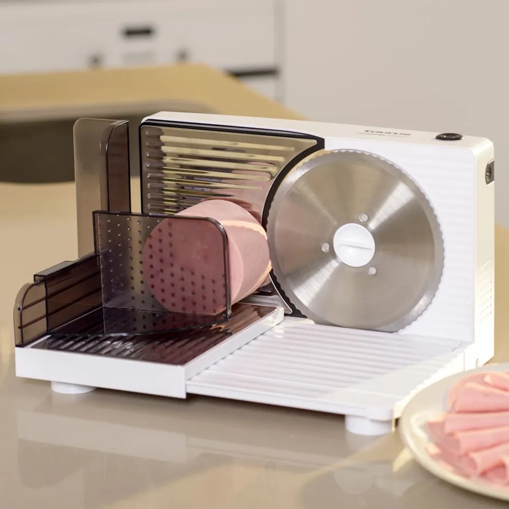 Corta carnes, embutidos, verduras, pan, quesos, frutas y mucho más con Cutmaster Compact. Con su cuchilla de acero inoxidable de 17 mm y su empujador de seguridad, podrás cortar todo tipo de alimento al grosor deseado, de entre 1 y 15 mm, y con total seguridad. Disfruta de un corte rápido, preciso y seguro con Cutmaster Compact y deja de lado la tradicional tabla y cuchillo.