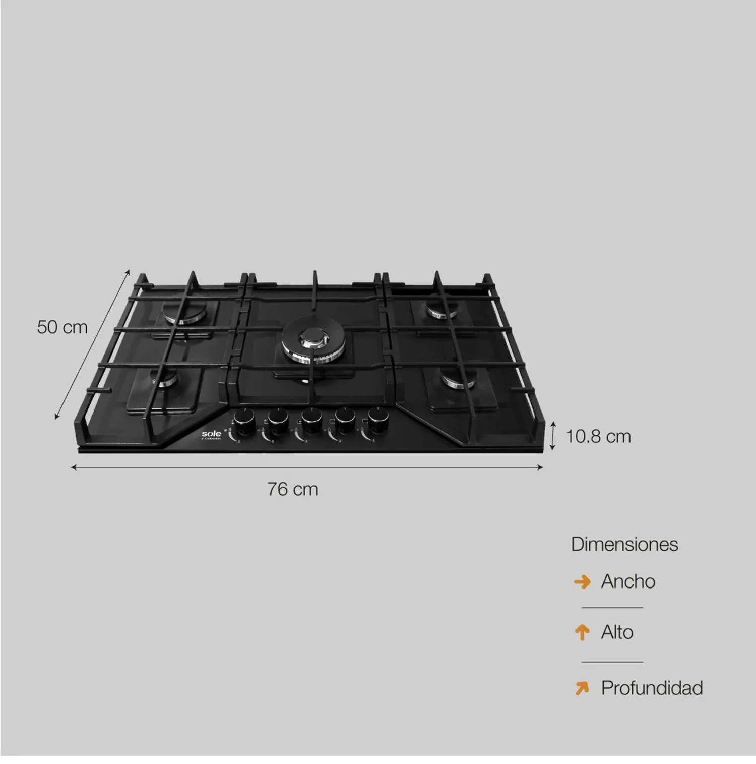 Resalta la elegancia de tu cocina con la encimera Sole S-COLLECTION de vidrio templado de fácil limpieza y disfruta cocinando con sus múltiples beneficios como Quemador "Chef Pro 4.0" ten listo tus alimentos en menos tiempo con la máxima potencia, Parrillas de Hierro Fundido "Full Size" ultra resistentes y seguras.