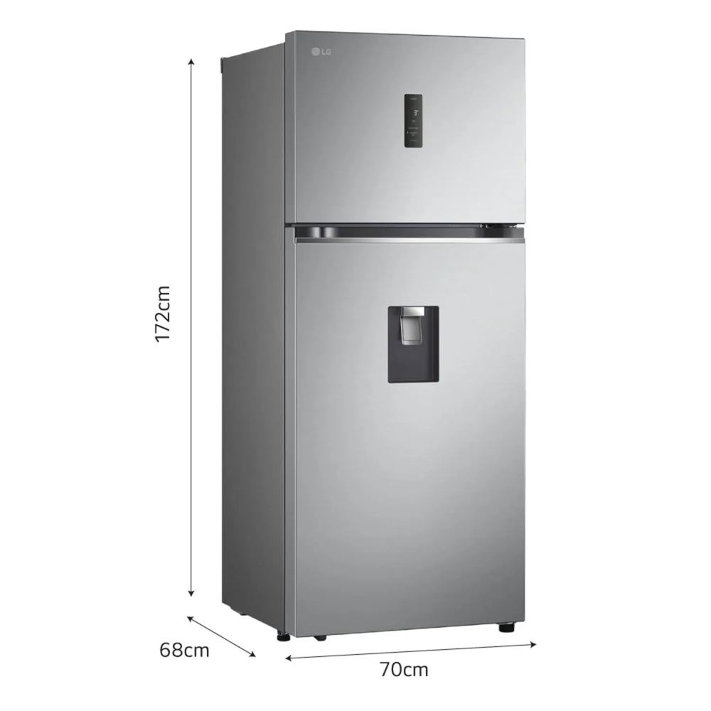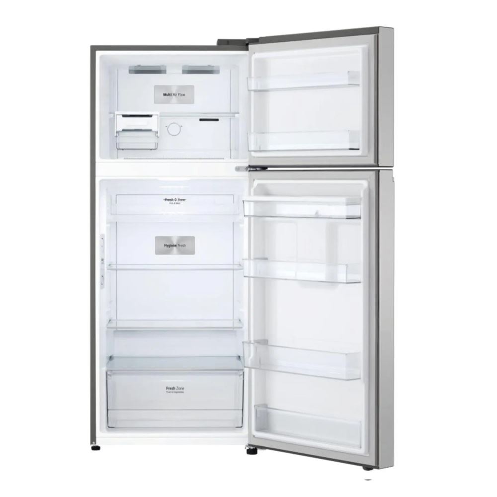 Este refrigerador Top Freezer cuenta con dispensador de agua, iluminación LED, y funciones innovadoras como HygieneFresh+, que purifica el aire interno eliminando bacterias y malos olores. Además, es compatible con ThinQ, la plataforma de conectividad Wi-Fi de LG, para un control más inteligente desde tu smartphone.
