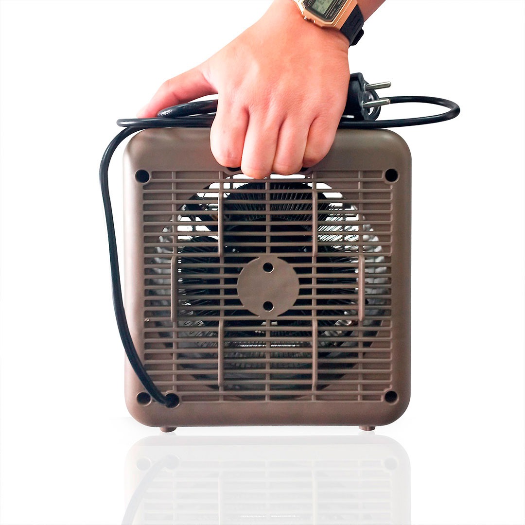 Cuenta con 2 potencias de calor (1000W y 2000W) y función ventilador. Es un calefactor con un potente caudal de aire para un rápido calentamiento de la habitación.