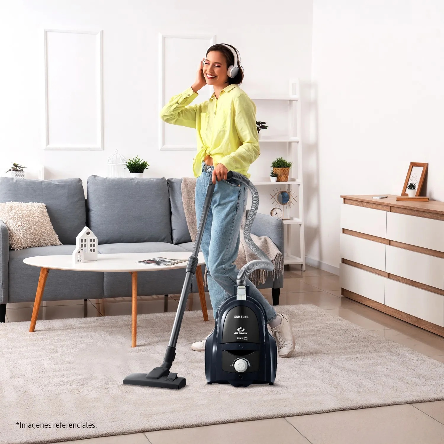 La aspiradora Samsung con tecnología Twin Chamber System™ está diseñada para ofrecer una limpieza más eficiente y prolongar la potencia de succión. Este sistema exclusivo separa el polvo en dos compartimientos: mientras las partículas más grandes se almacenan en la cámara exterior, el aire limpio continúa circulando sin obstrucciones. Además, no requiere bolsas de repuesto, lo que reduce costos y facilita el mantenimiento.