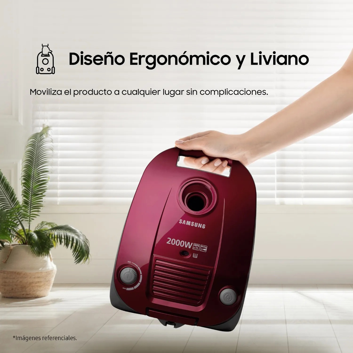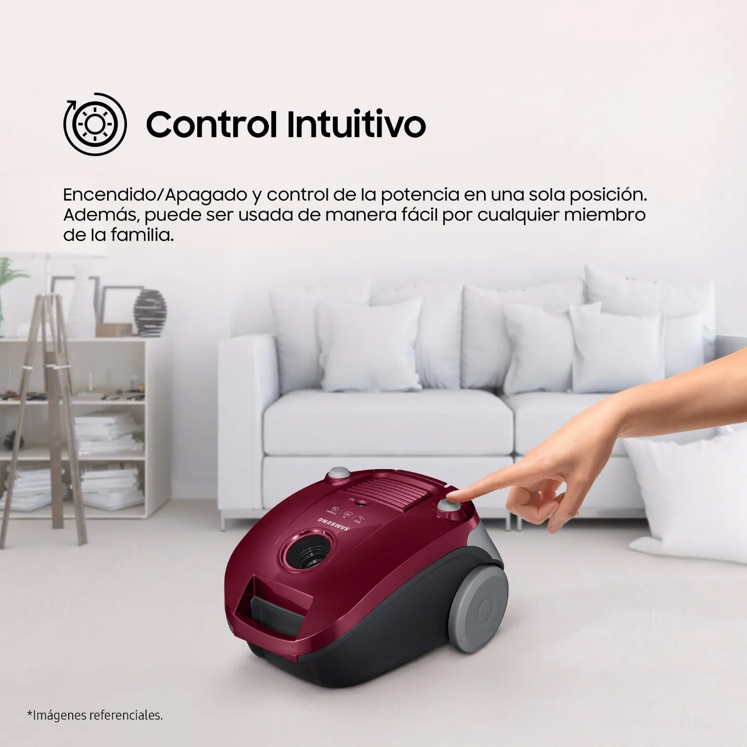 La aspiradora Samsung de 2000W combina una gran capacidad de recolección con funciones inteligentes que hacen más fácil cada tarea de limpieza. Gracias a su diseño compacto y moderno en color Merlot Morado, esta aspiradora no solo es potente, sino también elegante.