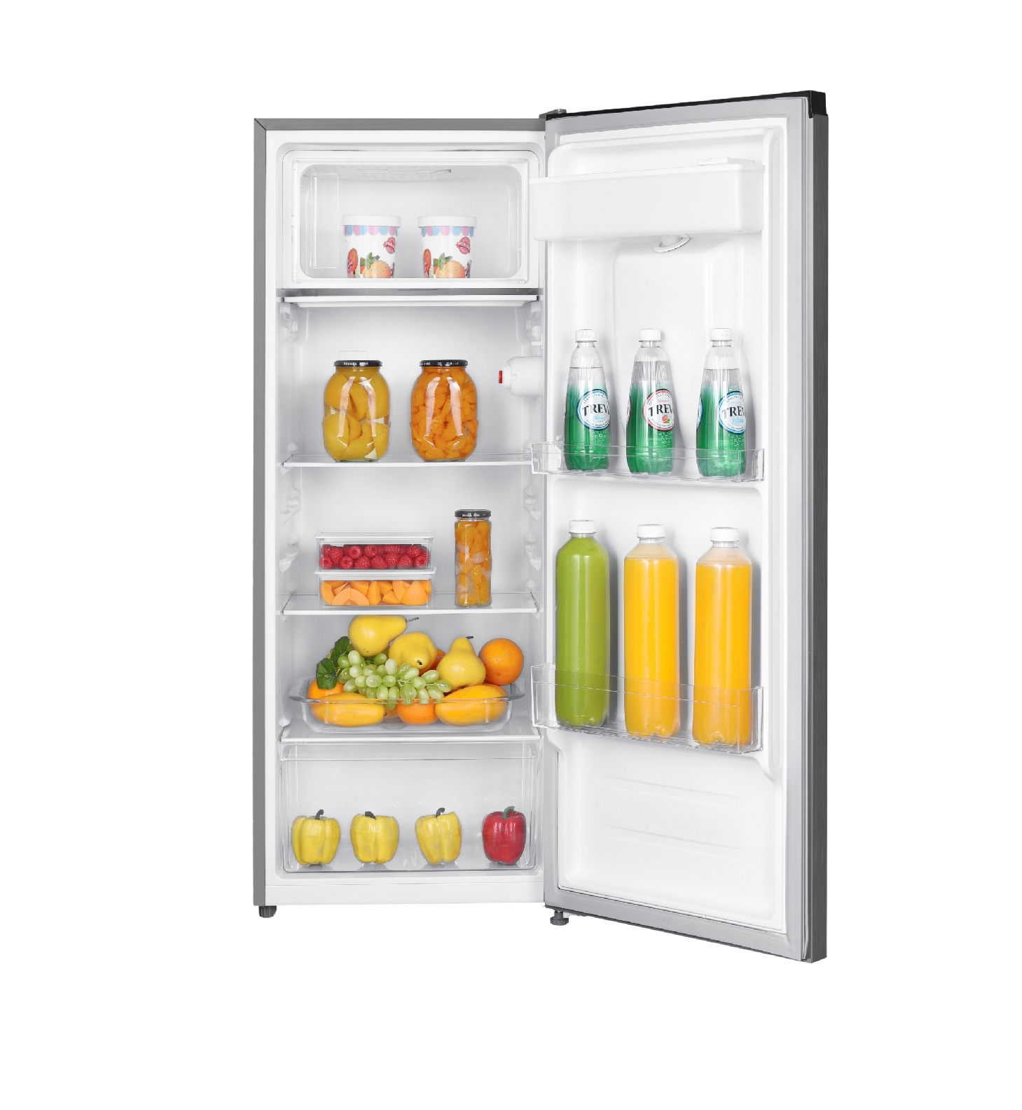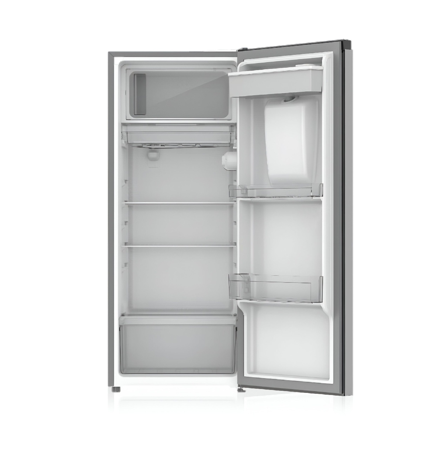 El diseño en acabado tipo acero inoxidable con manija oculta aporta un toque elegante y minimalista. Además, incluye luz interior, puerta reversible y control de temperatura mecánico para una mejor organización y fácil acceso a tus alimentos.