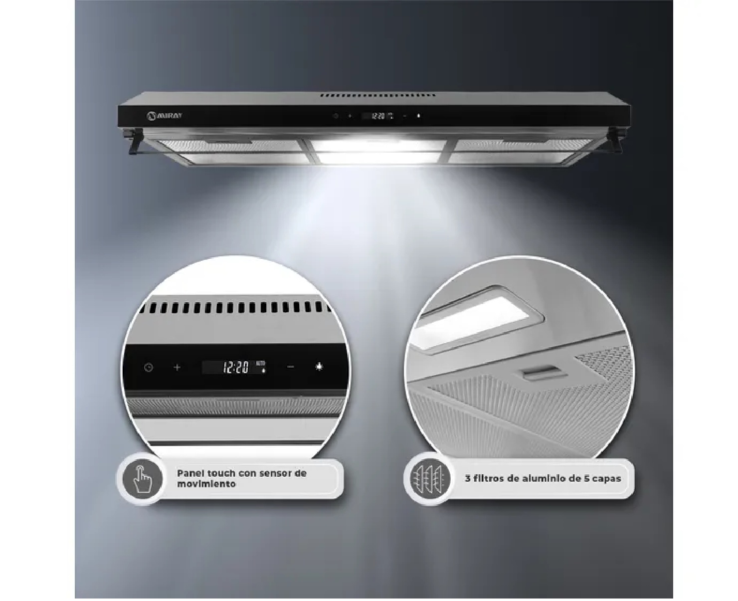 La Campana Extractora Miray CEM-906A de 90 cm es la elección perfecta para quienes buscan una cocina libre de humo y olores, sin sacrificar el diseño moderno y la funcionalidad. Con tecnología avanzada y un acabado en acero inoxidable, esta campana se integra armoniosamente en cocinas contemporáneas, ofreciendo una experiencia culinaria superior.