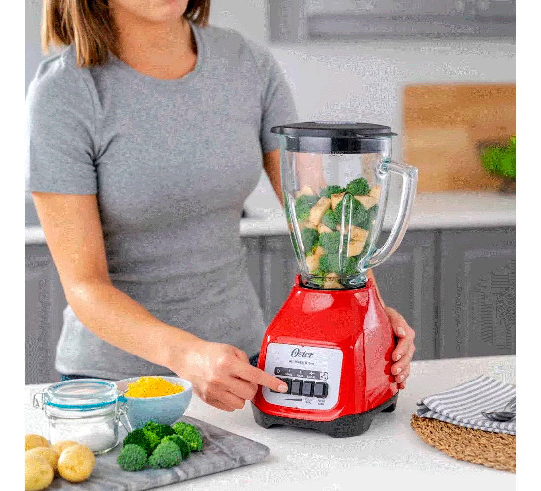 El poderoso motor con alta fuerza de torsión y vaso de vidrio refractario Boroclass® de la licuadora Oster® son ideales para preparar una amplia variedad de recetas frías y calientes, jugos, batidos y mucho más.
