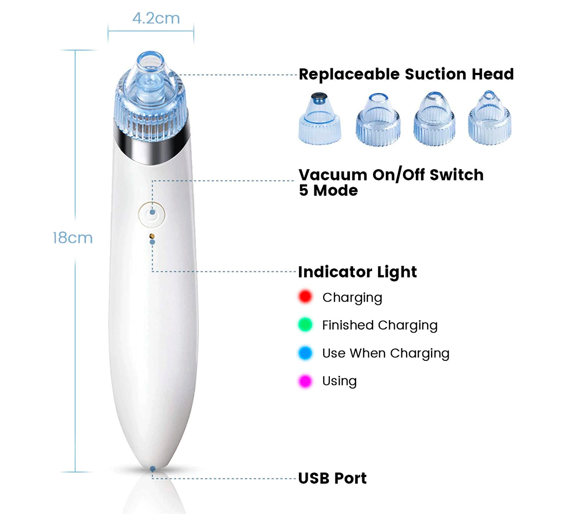 Este dispositivo muchos usos ventosas a suck eliminar la suciedad de los poros, para, acné, puntos negros, grasa, ácaros, exfoliante, reafirmante y masaje en la cara Piel, elevación, promover la circulación de la sangre, le permiten recuperar limpio y saludable piel.
