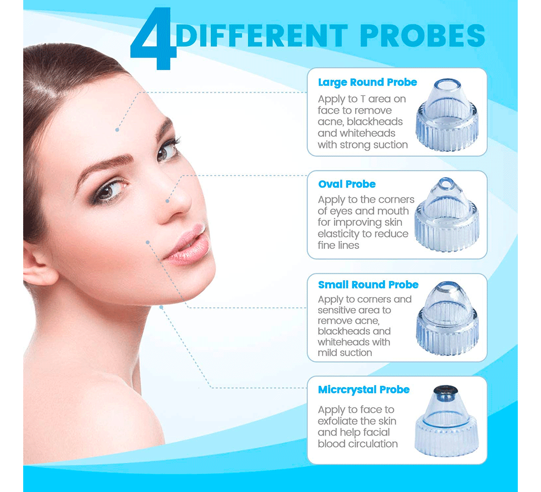 4 funcional ventosas para diferentes condiciones de la piel con diferentes cabezas de succión, limpia los poros, elimina la suciedad grasa dentro de puntos negros, reduce la piel muerta y líneas finas, masaje y apriete la piel, para ser su hogar Profesional Spa herramienta de cuidado de la piel.