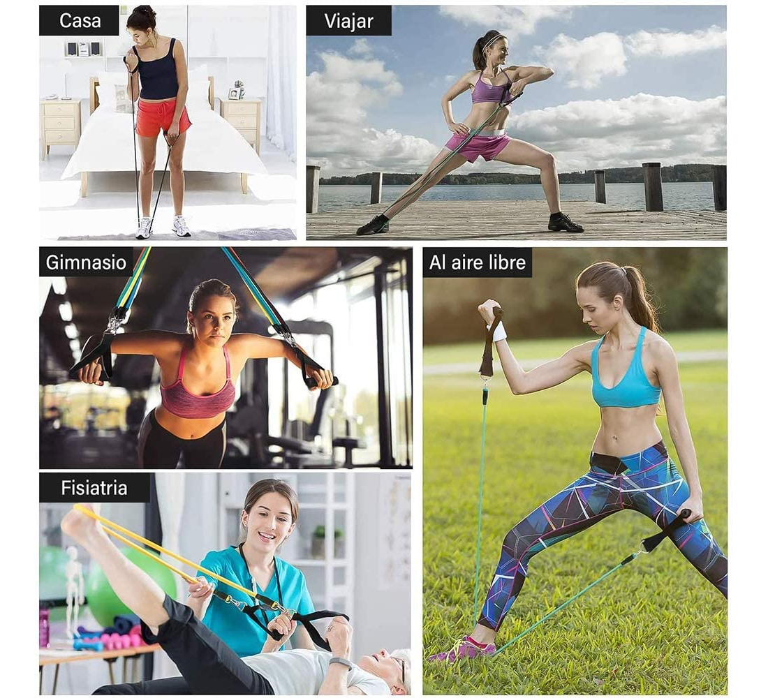 Nuestras bandas se pueden aplicar a diferentes tipos de ejercicio. Perfecto para tonificar tus brazos, hombros, pecho, glúteos, piernas, etc. También viene con una práctica bolsa de viaje. También puedes llevar tus bandas al gimnasio, la oficina e incluso entrenar en vacaciones.