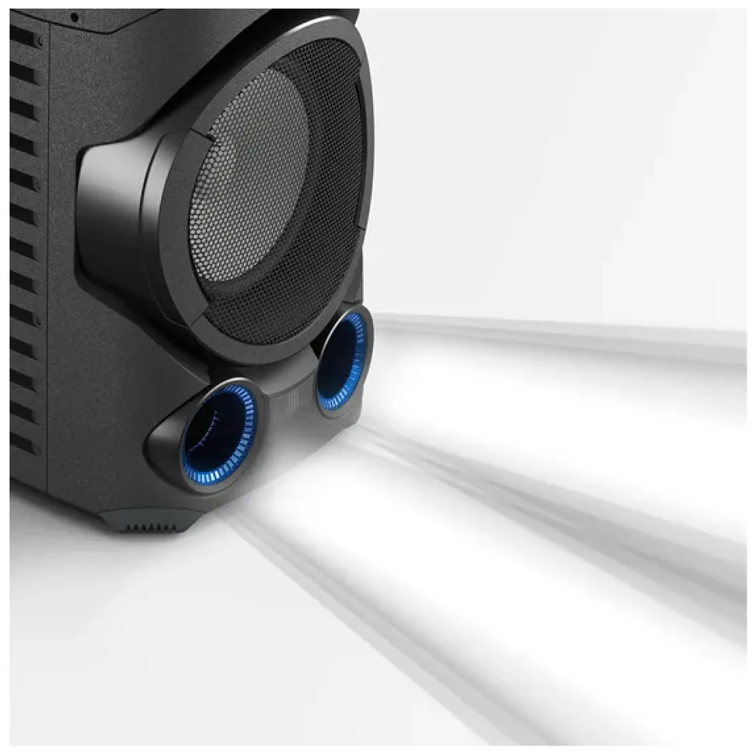 Lleva la diversión de la fiesta a un público más amplio con sonido de fiesta omnidireccional, mejora el ambiente con las intermitentes luces de fiesta omnidireccionales y de parlante, y diviértete con la lista de reproducción de la fiesta y la clasificación de karaoke gracias a la aplicación Fiestable. Los protectores y las ruedas facilitan el transporte como nunca.