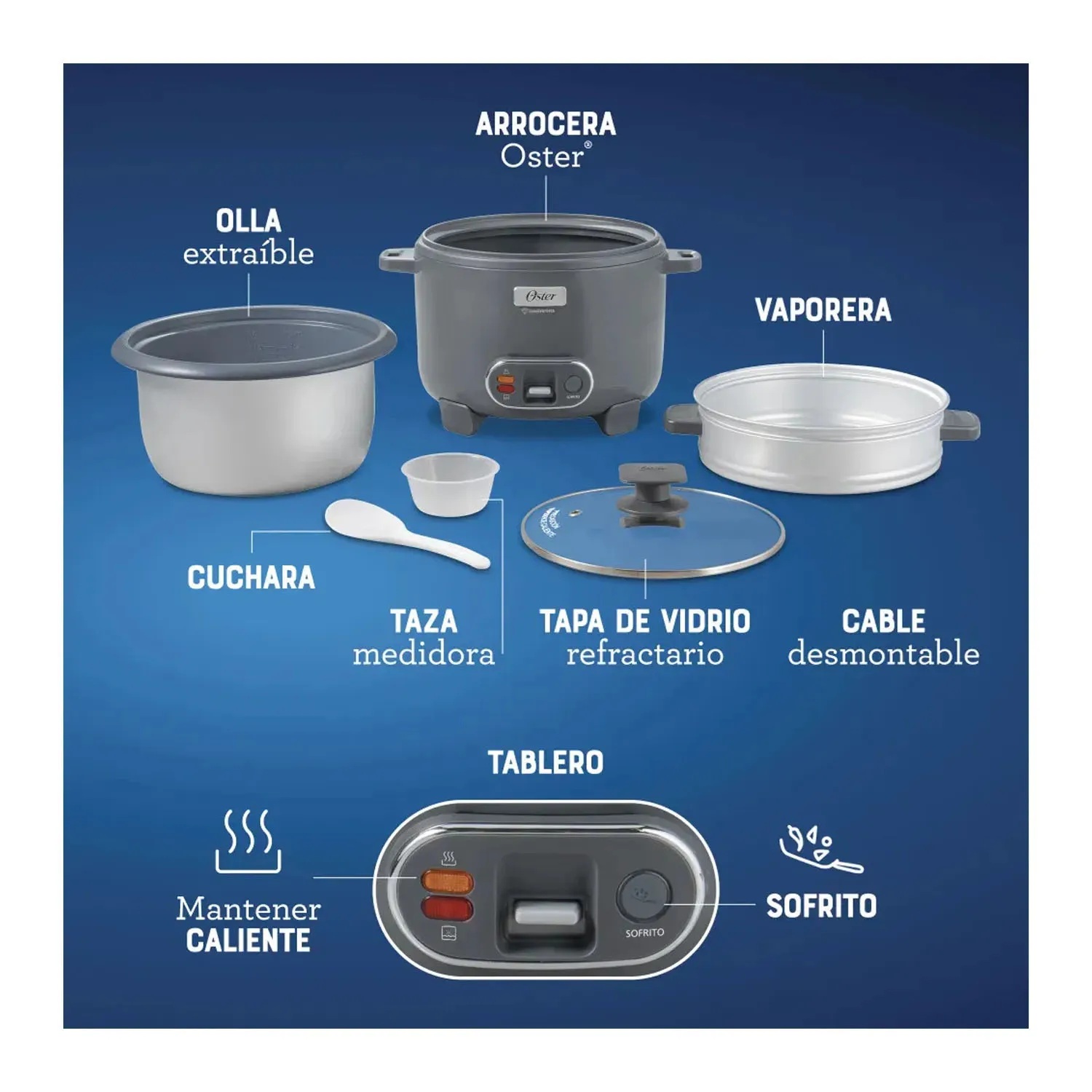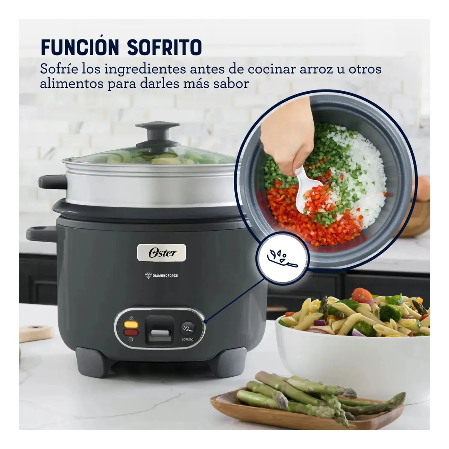 Arrocera Oster 12 Taz Sofrito Vaporera DiamondForce Gris CKSTRC12DFSKE