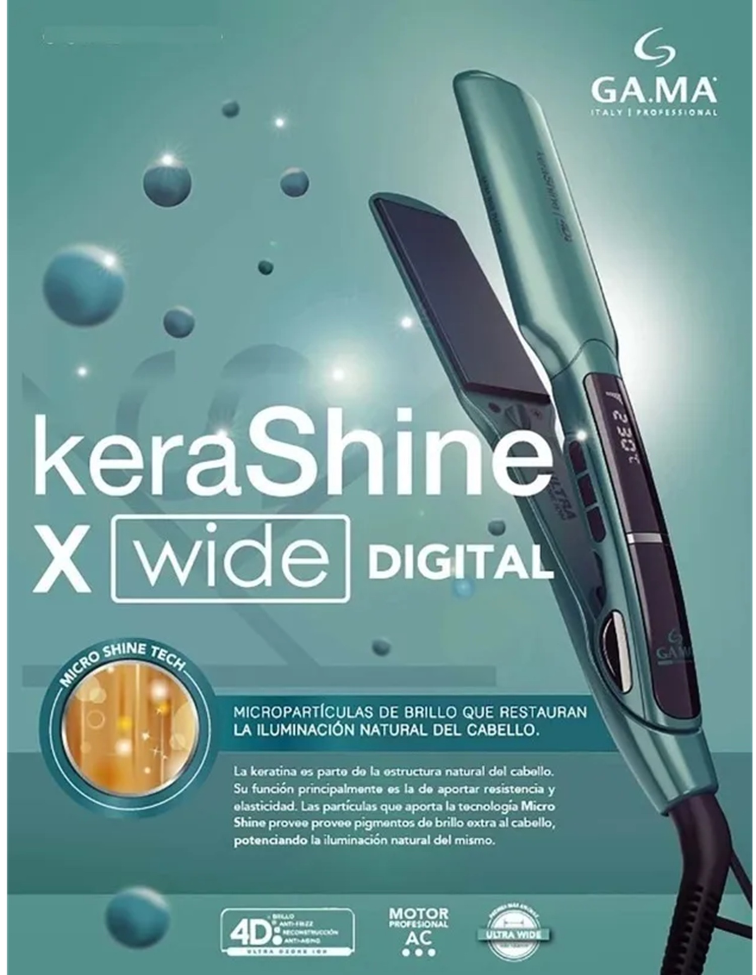 La X-Wide Digital Kerashine 4D está diseñada para brindarte un alisado perfecto en menos tiempo, cuidando la salud y el brillo natural de tu cabello. Sus patines extra anchos de 40 x 100 mm, recubiertos con tecnología Micro-Shine, potencian la iluminación natural del cabello y aportan un acabado radiante.