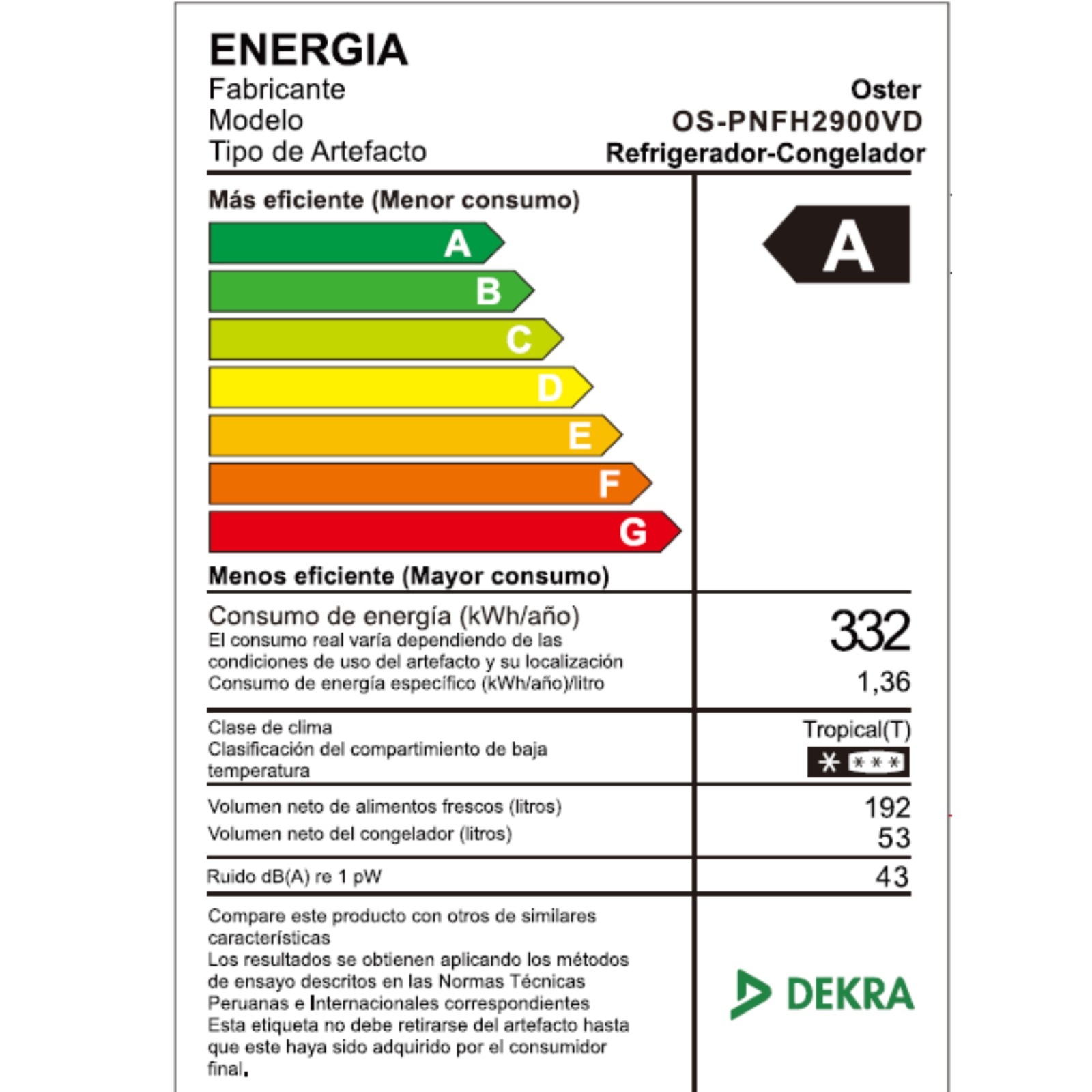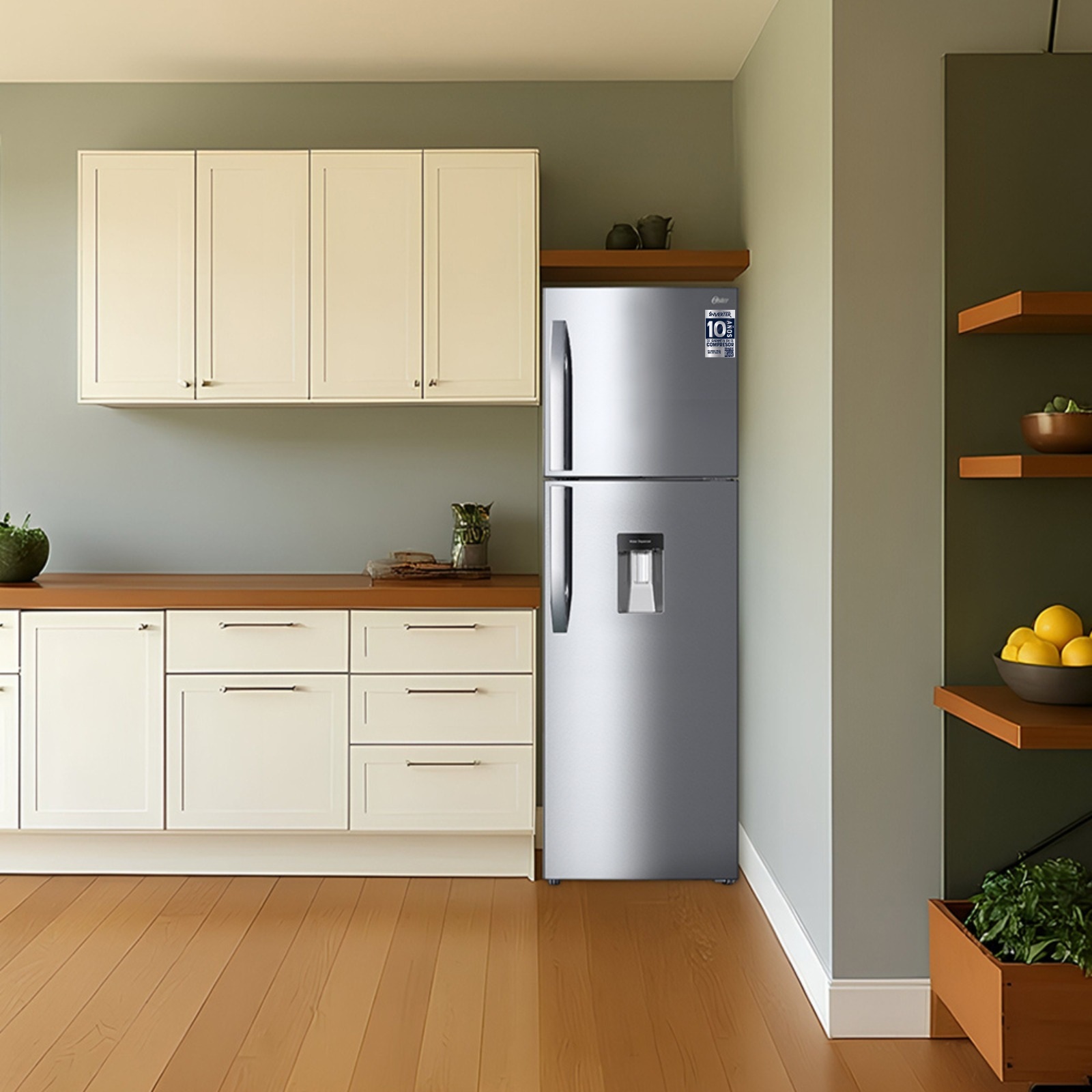La Refrigeradora Oster Inverter No Frost combina diseño moderno, practicidad y eficiencia. Con una capacidad total de 245 litros (193 L en refrigerador y 52 L en congelador), ofrece el espacio ideal para organizar tus alimentos y mantenerlos frescos por más tiempo.