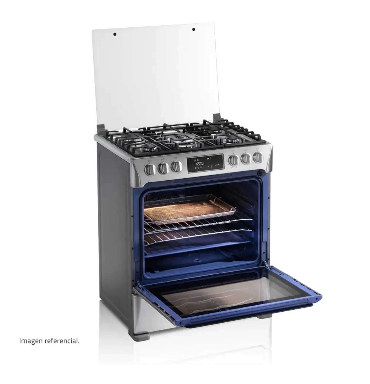 La Cocina Smart Indurama de 30 pulgadas combina innovación, tecnología y elegancia en un solo producto. Con su diseño en color Croma, tablero y frente en acero inoxidable, ofrece resistencia, durabilidad y un estilo moderno para tu cocina.