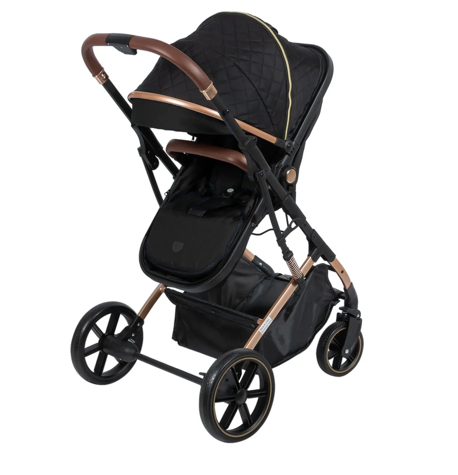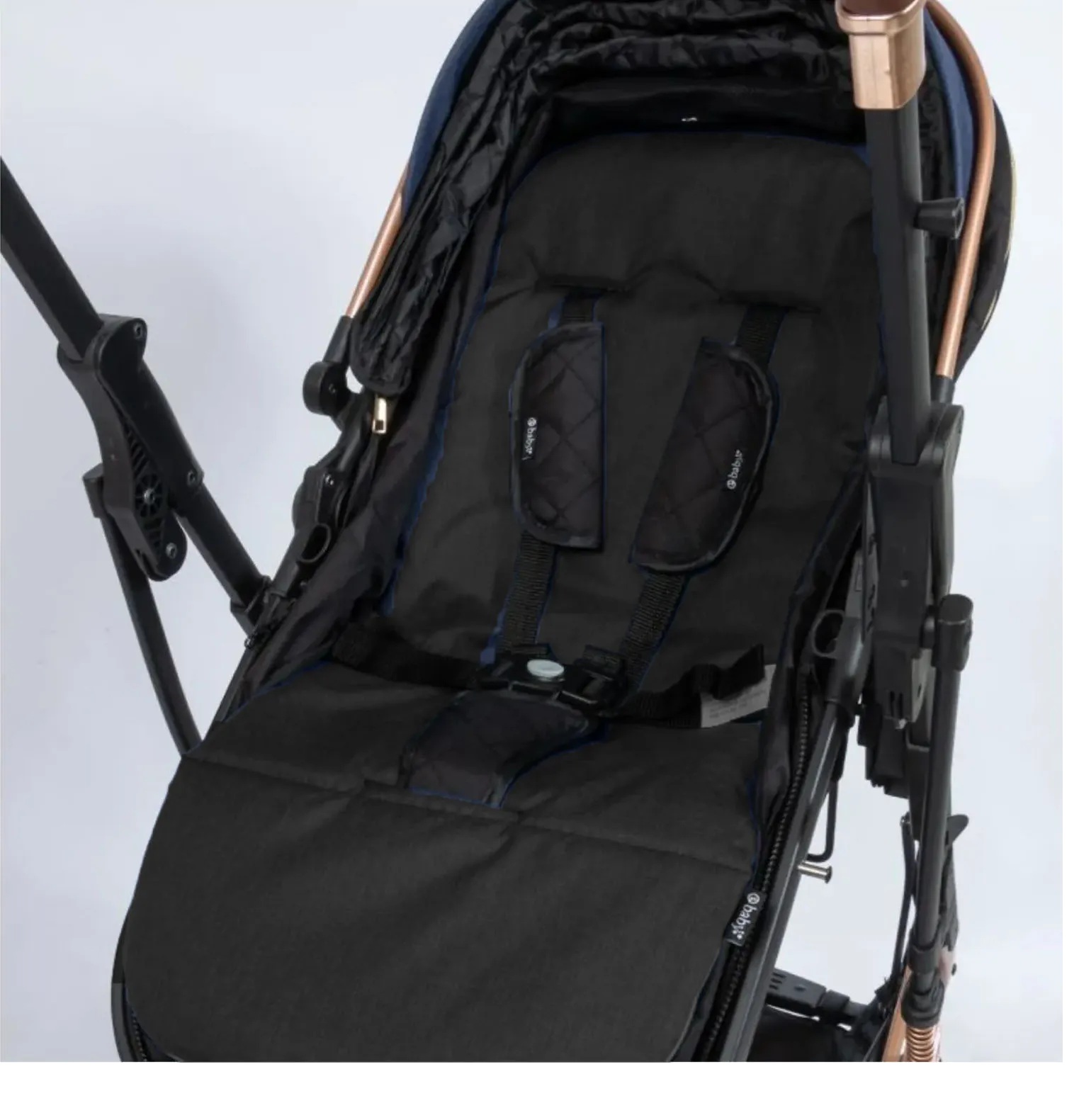 Cuenta con una barrera frontal desmontable, cinturón de seguridad de 5 puntos y ruedas de goma: delanteras giratorias 360° con fijador de dirección y traseras con freno unificado, para una conducción suave y segura. Su sistema de amortiguación, reposapiés y cubrepiés completo lo hacen perfecto para todo tipo de trayectos, y su amplia canastilla organizadora te da el espacio que necesitas para llevarlo todo.