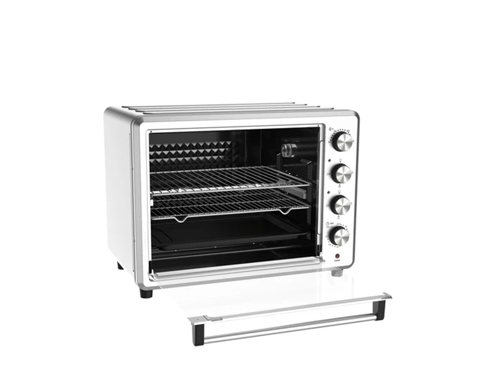 Con un amplio espacio interior, revestimiento antiadherente de fácil limpieza y timer de 120 minutos con apagado automático, este horno es práctico, seguro y potente. Además, incluye accesorios completos para hornear, rostizar y asar con comodidad.