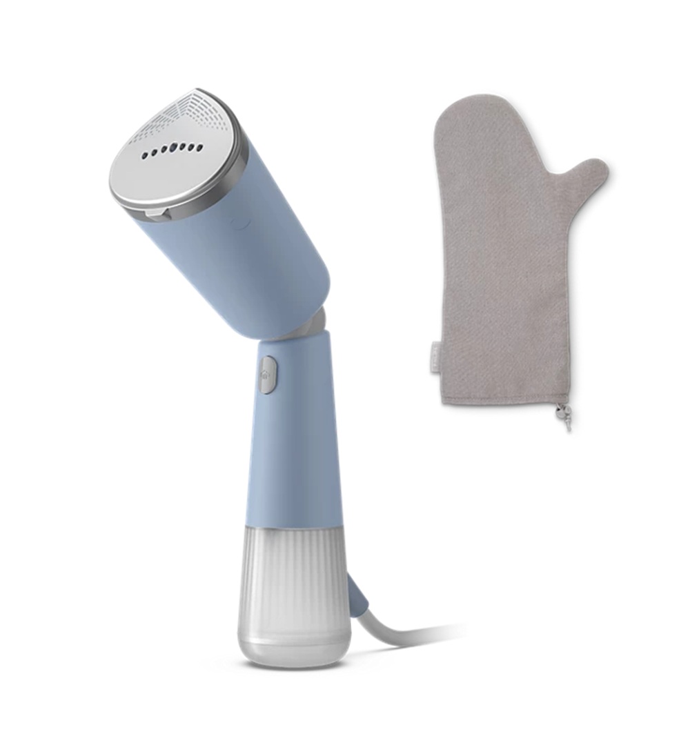 El vaporizador portátil serie 5000 Philips incluye su propio accesorio de viaje 2 en 1, para que pueda guardarlo de forma ordenada y a salvo de golpes dondequiera que vaya. Además, cualquier prenda que lleve se vaporizará de forma segura en cuestión de minutos, ya que se transforma en un guante de seguridad que, además, lo protege de quemaduras accidentales provocadas por el vapor en casa o fuera de ella.