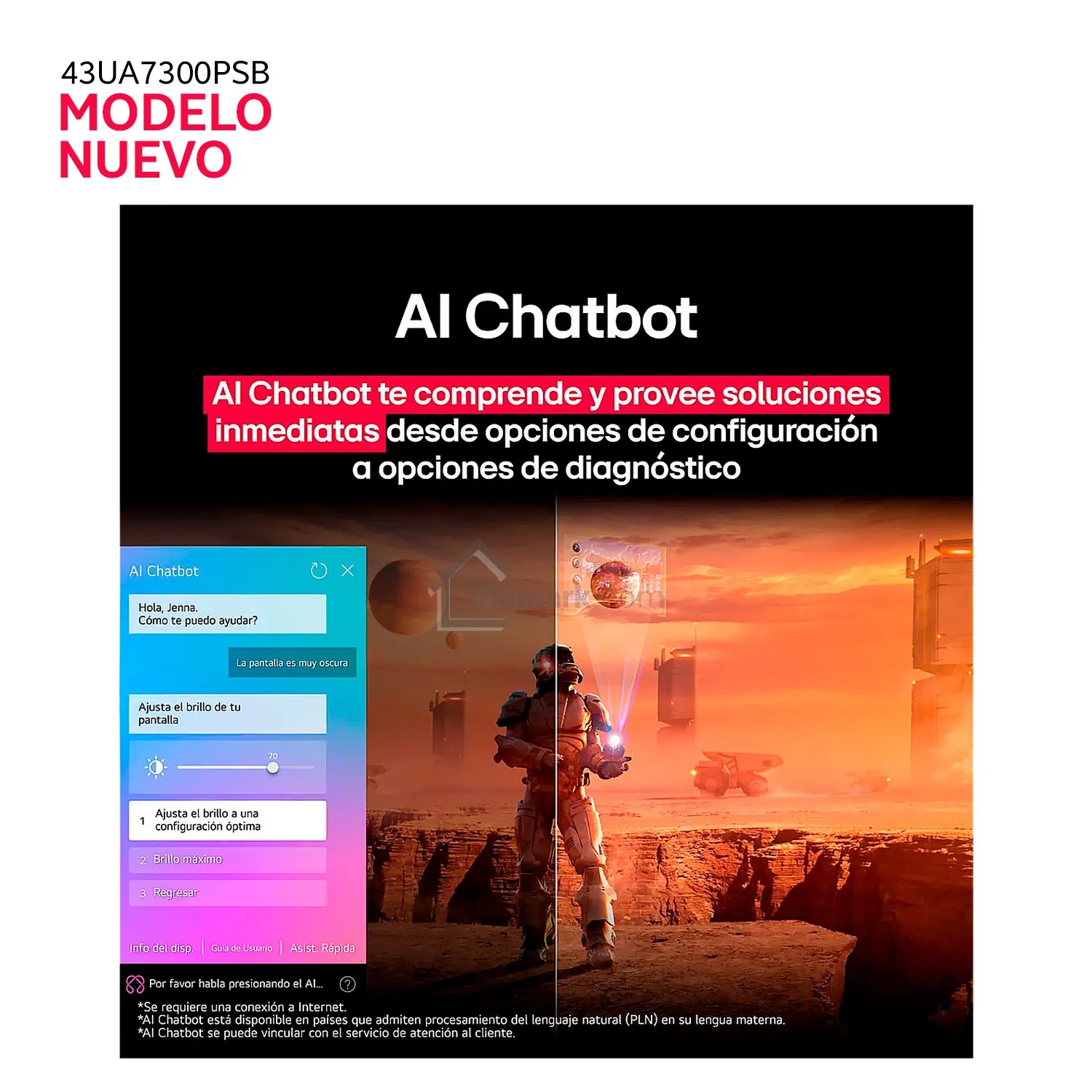 Vive una experiencia visual superior con el LG 43UA7300PSB, un Smart TV 4K diseñado para ofrecerte imágenes más nítidas, colores vivos y sonido envolvente con inteligencia artificial. Su sistema operativo webOS 25 te brinda acceso rápido a tus apps favoritas como Netflix, YouTube, Disney+ y muchas más, con una navegación fluida y sencilla.