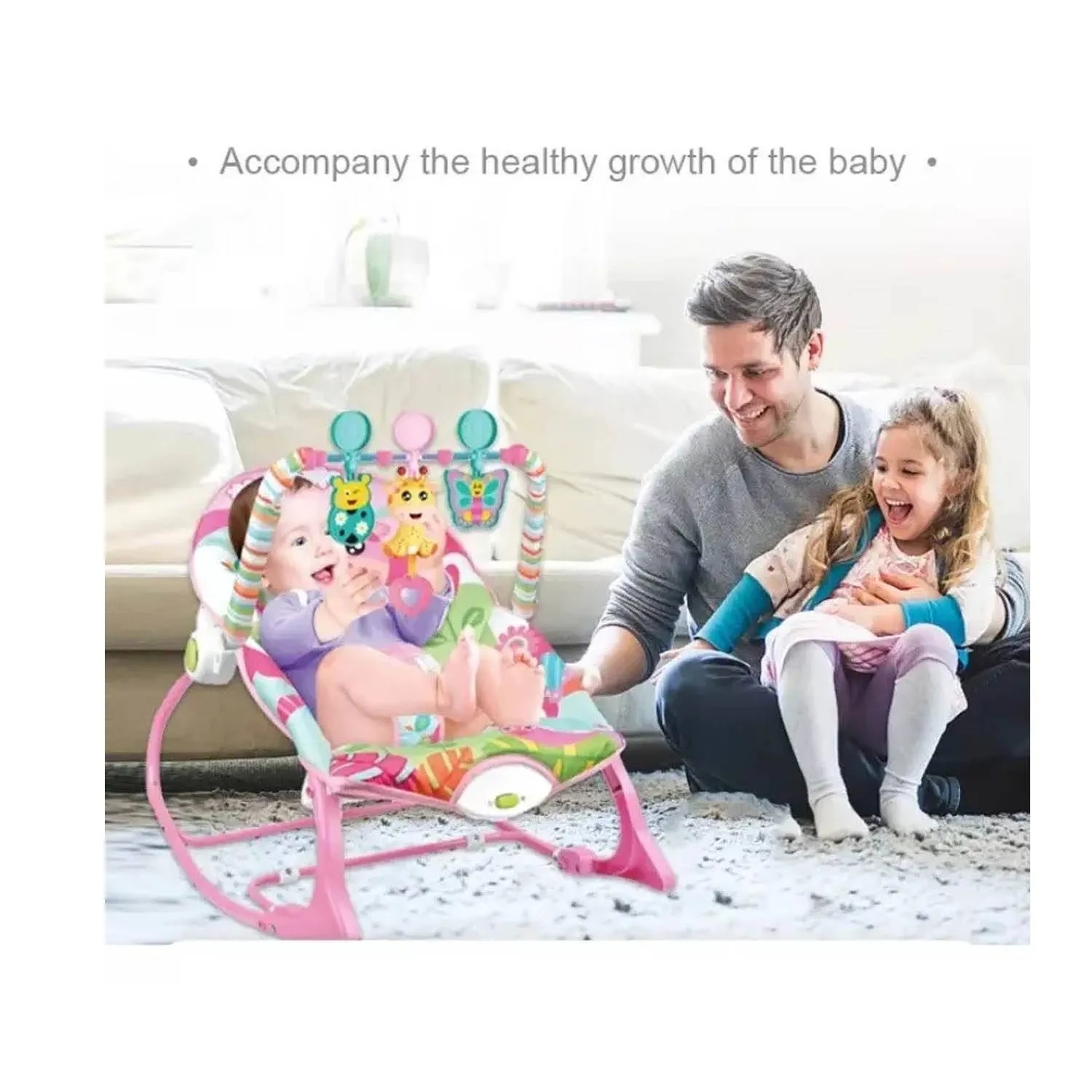 ¡Dale a tu bebé el lugar perfecto para descansar pero también para divertirse con la música de esta Silla Mecedora! Esta fantástica silla nido te ofrece diferentes modos para que tu bebé pueda disfrutar: Modo Mecedora musical y con vibraciones relajantes y Modo silla. ¡Y podrá disfrutar cómodamente con sus posiciones de reclinación! Además esta práctica silla nido le ofrece horas de diversión y estimulación a tu bebé. ¡También incluye estimulantes vibraciones de melodías para relajar a tu pequeño en sus momentos de descanso! Úsala desde los primeros días de tu bebe y acompaña su crecimiento.