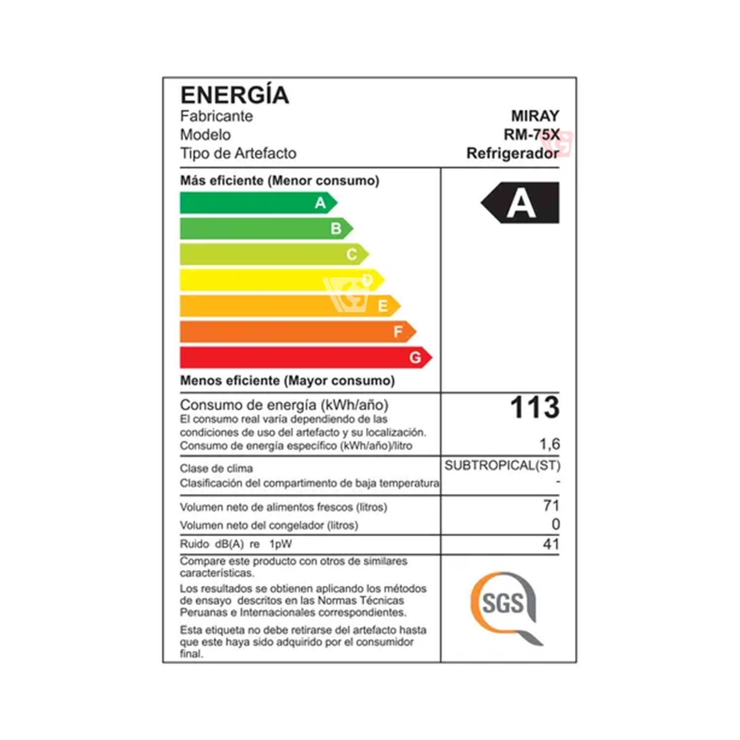 Eficiencia energética A, con bajo consumo de solo 113 kW/año.