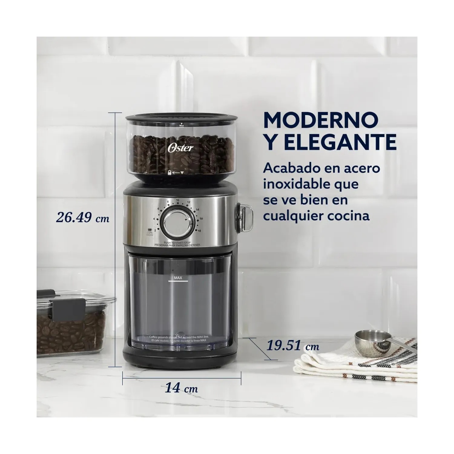 Los Molinillos de Café Automáticos Oster® son fáciles de usar, con un diseño que luce bien en cualquier cocina y la calidad confiable de siempre. Muelen los granos justo antes de preparar el café, conservando su aroma y logrando un sabor intenso y fresco para disfrutar el café como debe ser.