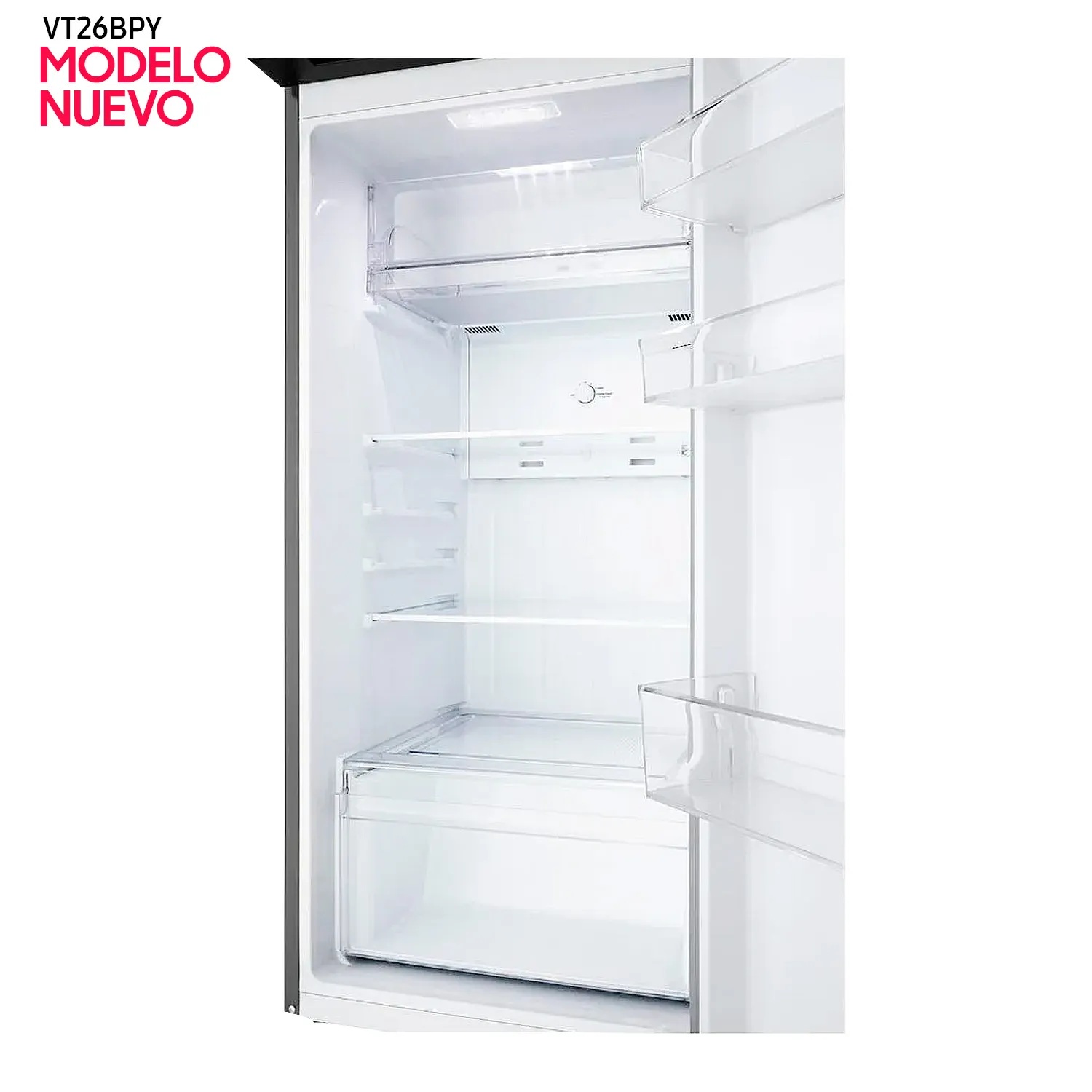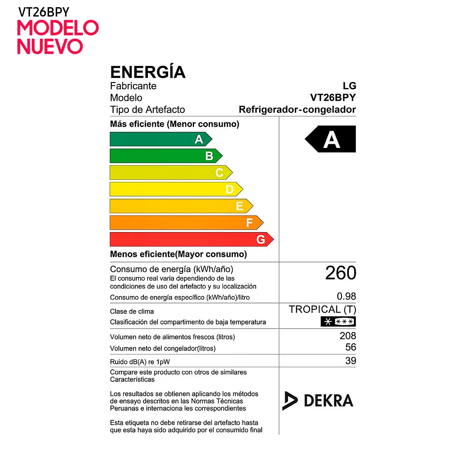 La LG Top Freezer de 264 litros es una refrigeradora moderna, eficiente y diseñada para mantener tus alimentos frescos por más tiempo. Su Smart Inverter Compressor optimiza el consumo energético, reduce el ruido y ofrece mayor durabilidad, respaldado por una garantía de 10 años en el compresor.