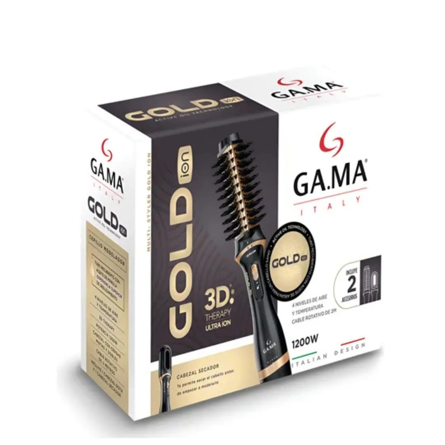 Logra un peinado profesional en casa con el Cepillo Secador Styler Gold. Este estilizador combina la potencia de un secador con la funcionalidad de un cepillo modelador, permitiéndote secar, alisar y dar volumen en un solo paso. Su diseño elegante con acabado dorado ofrece un look moderno y de salón.